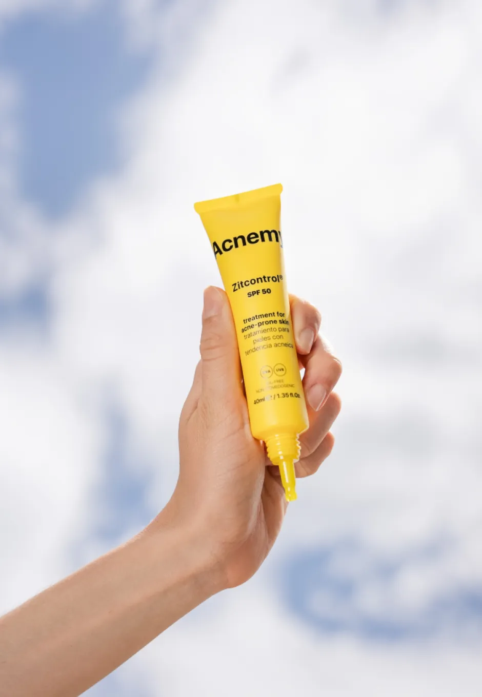Das Acnemy Zitcontrol SPF 50 präsentiert sich in einem stilvollen, schlanken Gelb, das sowohl modern als auch funktional erscheint. Die Tube liegt angenehm in der Hand und erlaubt eine präzise Dosierung des Produkts. Das klare, minimalistische Design hebt die Funktionalität hervor, während die leuchtende Farbe einen frischen Akzent setzt. Diese Kombination aus Ästhetik und Praktikabilität macht das Produkt zu einem eleganten Begleiter in Ihrer täglichen Pflegeroutine.