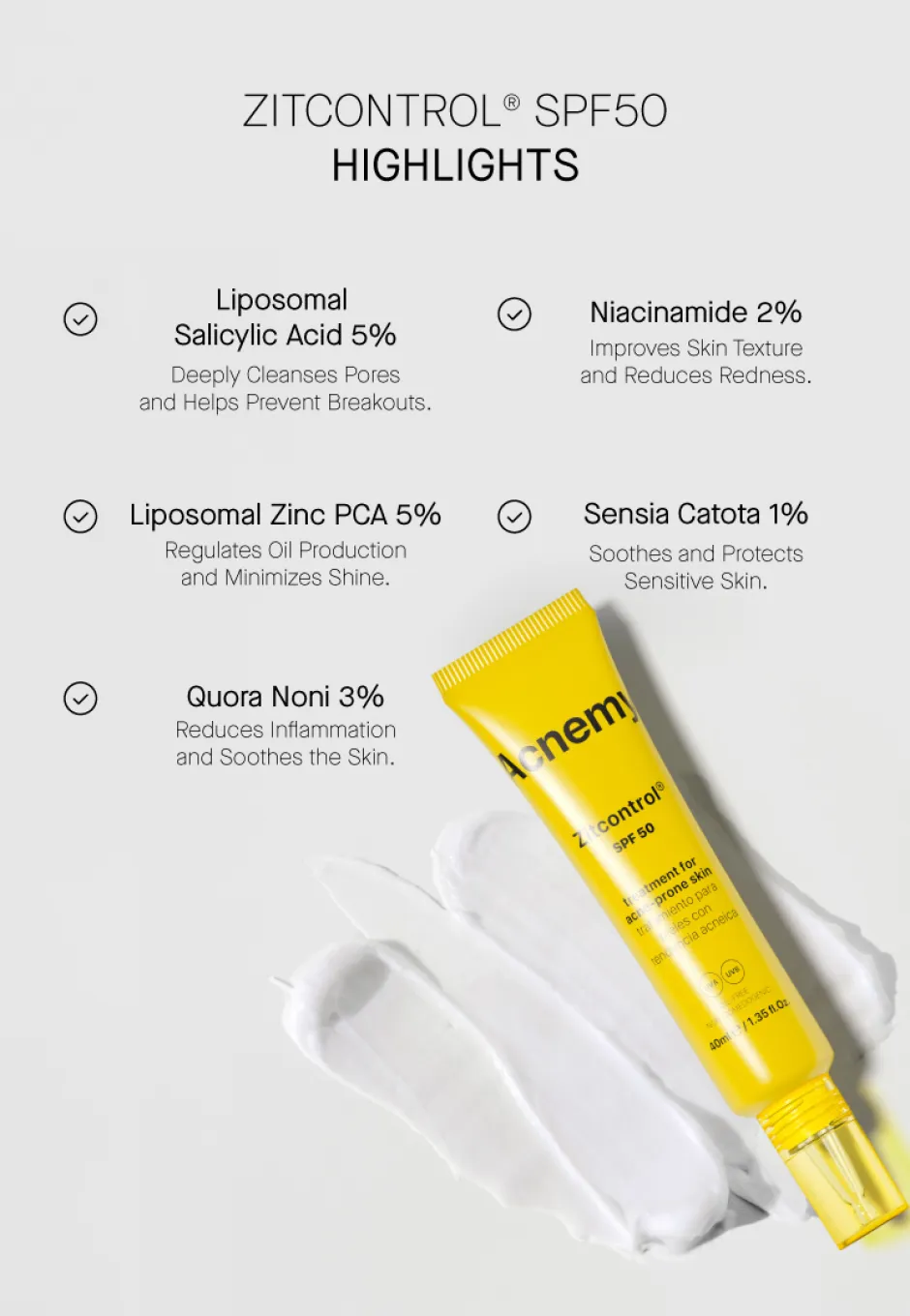 Produktdetails zu Gesichtspflege Zitcontrol SPF 50 – Behandlung von Aknehaut mit Sonnenschutz von Acnemy