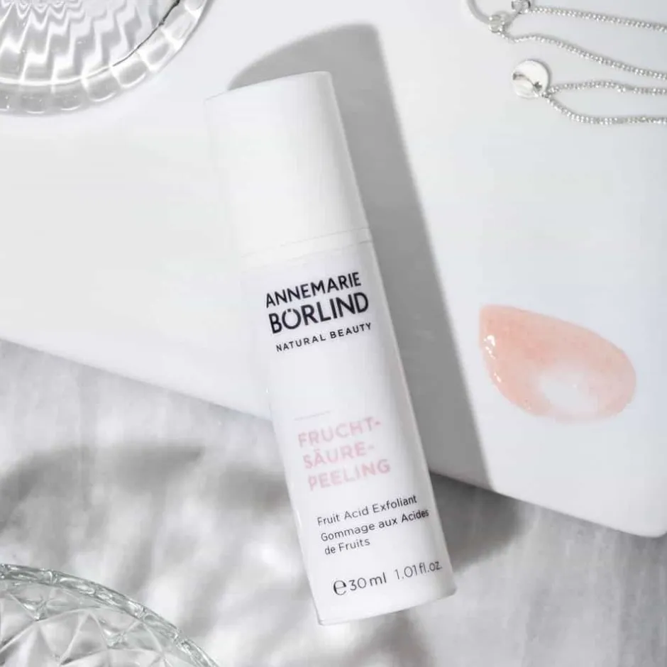 Das ANNEMARIE BÖRLIND Fruchtsäure-Peeling ist Ihr perfekter Begleiter für eine glatte und verfeinerte Haut. Mit einem natürlichen Mix aus Fruchtsäuren und Pflanzenextrakten entfernt es sanft abgestorbene Hautschüppchen und stimuliert den Hauterneuerungsprozess. Dies sorgt für einen optimierten Teint, der besonders bei unreiner Haut für ein frisches und elastisches Hautbild sorgt. Die sorgfältig ausgewählten Inhaltsstoffe wurden wissenschaftlich auf Verträglichkeit und Wirkung geprüft und kommen ohne Mineralölderivate aus. Das Produkt ist vegan, wodurch es nicht nur Ihrer Haut, sondern auch Ihrer Überzeugung gerecht wird.