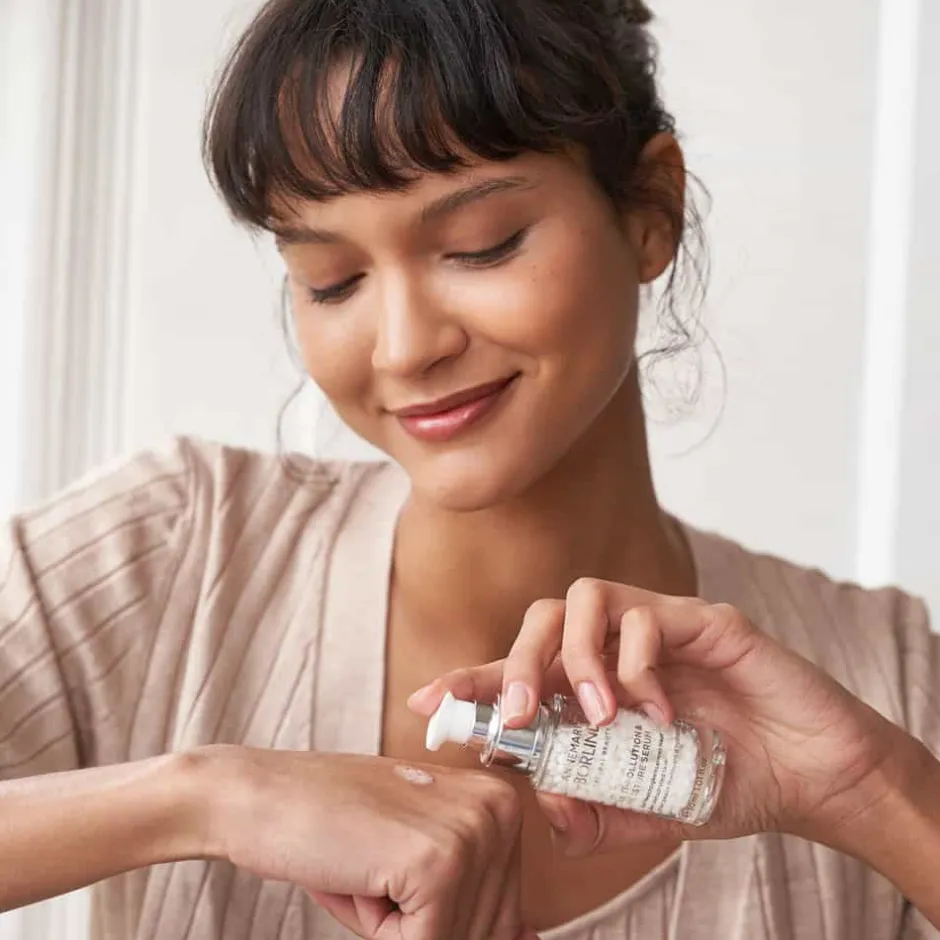 Das ANNEMARIE BÖRLIND Anti-Pollution & Moisture Serum besticht durch seinen klaren, eleganten Flakon, der sowohl modern als auch zeitlos wirkt. Die transparente Glasflasche lässt die schimmernden BEAUTY PEARLS in ihrer ganzen Pracht erstrahlen. Der silberne Pumpverschluss fügt sich nahtlos ins Design ein und ermöglicht eine präzise Dosierung. Die Kombination aus klaren Linien und hochwertigen Materialien macht dieses Serum nicht nur zu einem Pflegeritual, sondern auch zu einem stilvollen Accessoire in Ihrem Badezimmer.