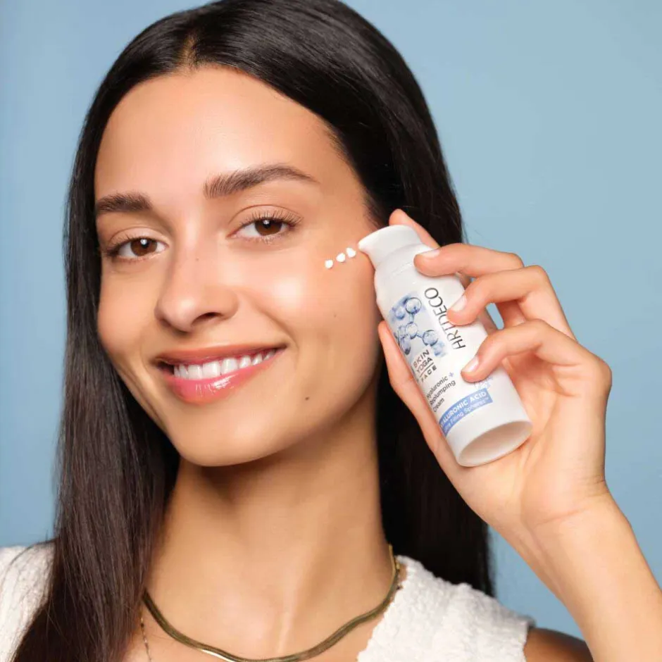 Erlebe die ARTDECO Hyaluronic + Replumping Cream mit ihrer samtig-zarten, neuartigen Textur und versorge Deine Haut mit Feuchtigkeit und intensiver Pflege.Innovative Ultra Filling Spheres™ kombiniert mit dreifach wirksamer Hyaluronsäure in unterschiedlichen Molekulargrößen polstern die Haut auf und lassen dabei Fältchen optisch verschwinden. Reichhaltige Sheabutter kombiniert mit wertvollem Kamelienöl verbessern ihre Spannkraft und Elastizität. Ein spezieller Antioxidant-Komplex neutralisiert freie Radikale und reduziert den negativen Effekt durch äußere Umwelteinflüsse. Ultra-feine Puderpartikel sorgen für eine strahlenden, ebenmäßigen Teint.Die wichtigsten Inhaltsstoffe und ihre Wirkung: – Hochmolekulare Hyaluronsäure: Bildet einen dünnen, durchlässigen, unsichtbaren und viskoelastischen Film auf der Epidermis, der die Feuchtigkeit auf der Haut wirksam bindet und speichert und sie so schützt – Hyaluronsäure mit mittlerem Molekulargewicht: Bildet einen langanhaltenden Schutz- und Feuchtigkeitsfilm und reguliert den Wassergehalt in den Zellen – Tiefenwirksame, niedermolekulare Hyaluronsäure: Dringt besonders gut in tiefere Hautschichten ein und sorgt für eine intensive Durchfeuchtung – Ultra Filling Spheres™: Straffen die Haut, glätten Falten und spenden langanhaltende Feuchtigkeit – Glycacid ECO: Verbessert das Eindringen der weiteren Wirkstoffe – Kamelienöl: Ist besonders pflegend und feuchtigkeitsspendend – Sheabutter: Verbessert die Spannkraft und Elastizität – Antioxidant-Komplex mit den Vitaminen C und E: Bietet eine antioxidative Wirkung und bekämpft freie Radikale – Puderpartikel: Sorgen für einen Weichzeichner Effekt *Nachgewiesene Wirksamkeit: – Nach einer Stunde sind Fältchen reduziert (-25%)** und die Haut wirkt fester bei 60%*** – Nach 28 Tagen bestätigten unsere Testpersonen: Die Haut erscheint gestrafft (85%)*** ** Instrumentaler Test zur Faltentiefe*** klinischer Test an 20 unabhängigen Testpersonen