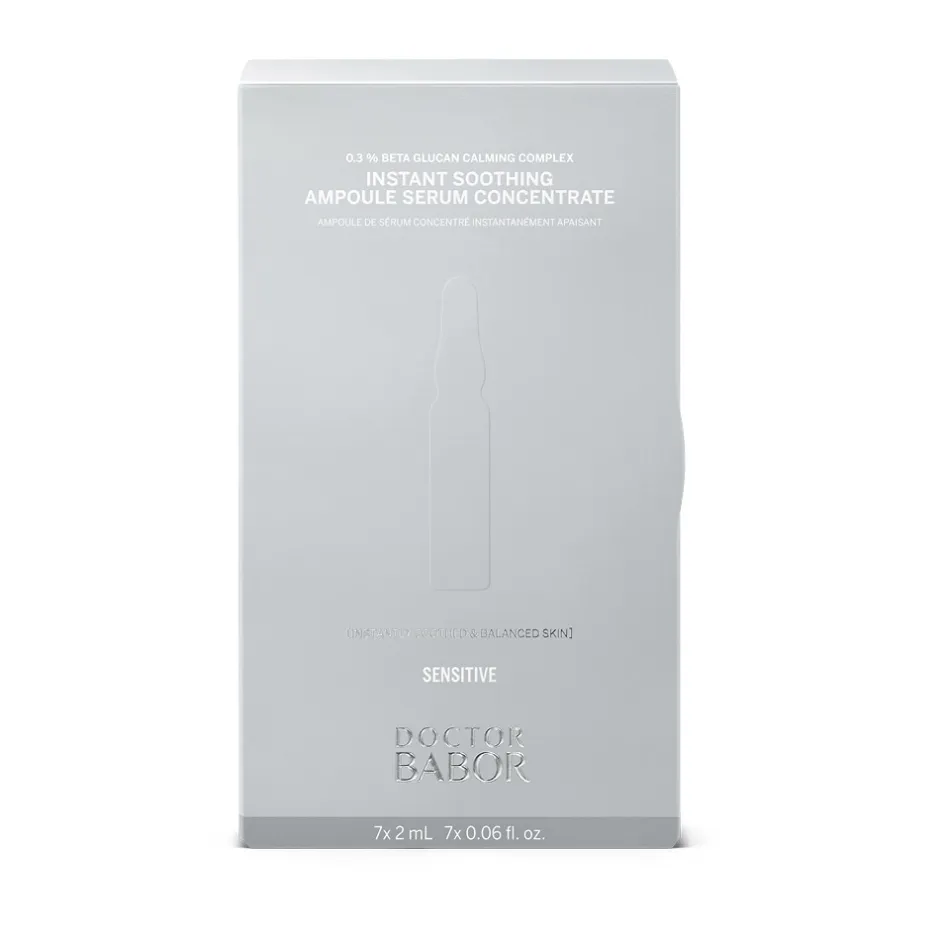 Die Babor Instant Soothing Ampulle ist die ideale Lösung für irritierte und gestresste Haut. Dieses hochwirksame Konzentrat entfaltet seine beruhigende Wirkung unmittelbar nach der Anwendung. Dank der speziellen Formel aus Beta-Glucan, Mikrosilber und multimolekularen Hyaluronsäuren werden Rötungen und Irritationen effektiv gemildert. Spannungsgefühle gehören der Vergangenheit an, während die Haut bei regelmäßiger Nutzung an Empfindlichkeit verliert. Diese gezielte Wirkstoffkombination sorgt für eine ausgeglichene und angenehm beruhigte Haut, die sich gepflegt und regeneriert anfühlt. Ihre Haut wird nicht nur sofort beruhigt, sondern profitiert langfristig von einer gestärkten Widerstandskraft gegenüber äußeren Einflüssen.