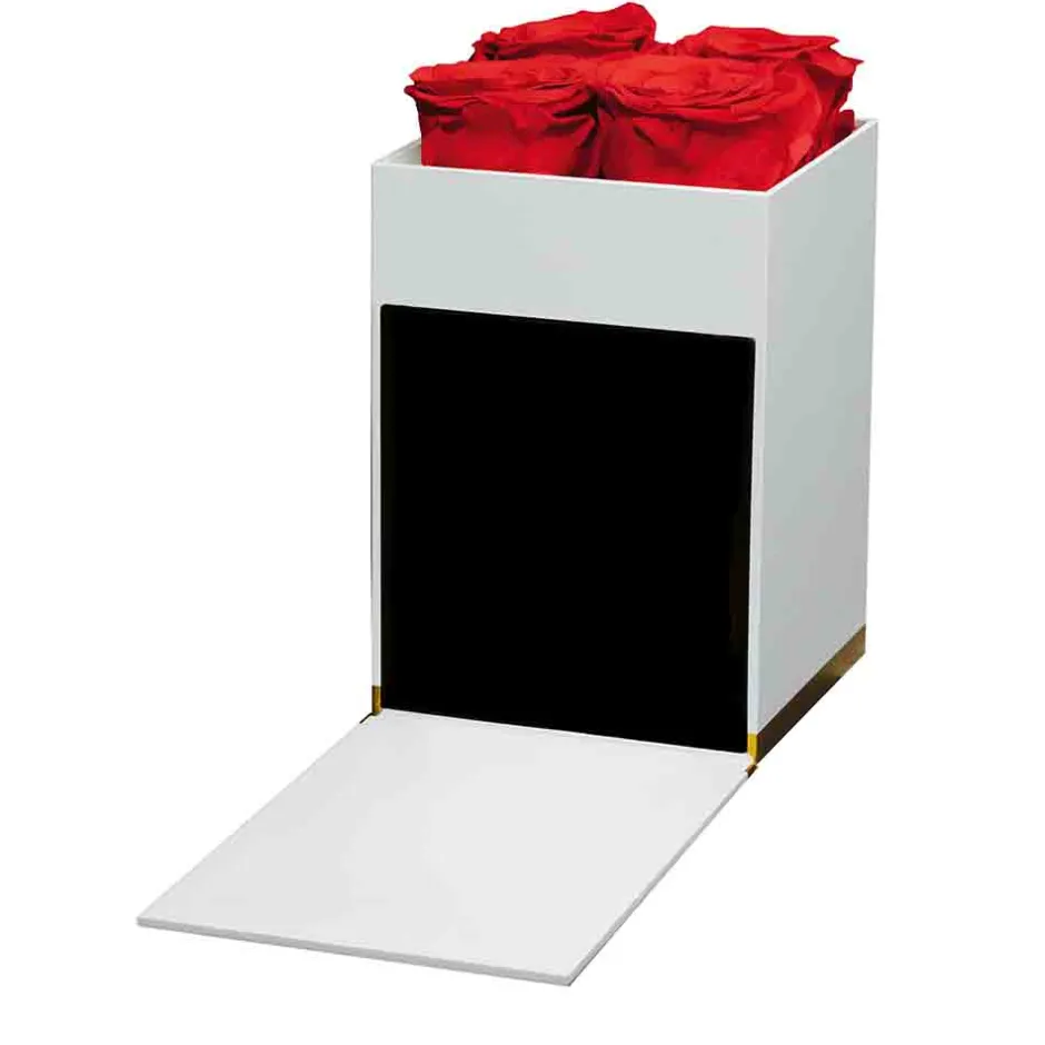 Die Birkholz Flower Medium Box Red besticht durch ihr minimalistisches und elegantes Design. Der weiße, rechteckige Behälter strahlt schlichte Eleganz aus, während der goldene Schriftzug einen Hauch von Luxus hinzufügt. Im Inneren thronen die vier roten Infinity Rosen, die durch ihre intensive Farbgebung und Haltbarkeit beeindrucken. Diese Kombination aus edlem Design und hochwertigen Materialien macht die Box zu einem herausragenden Blickfang. Die kompakte Form und die sorgfältig ausgewählten Details verleihen ihr eine zeitlose Ästhetik, die in jedem Raum zur Geltung kommt.
