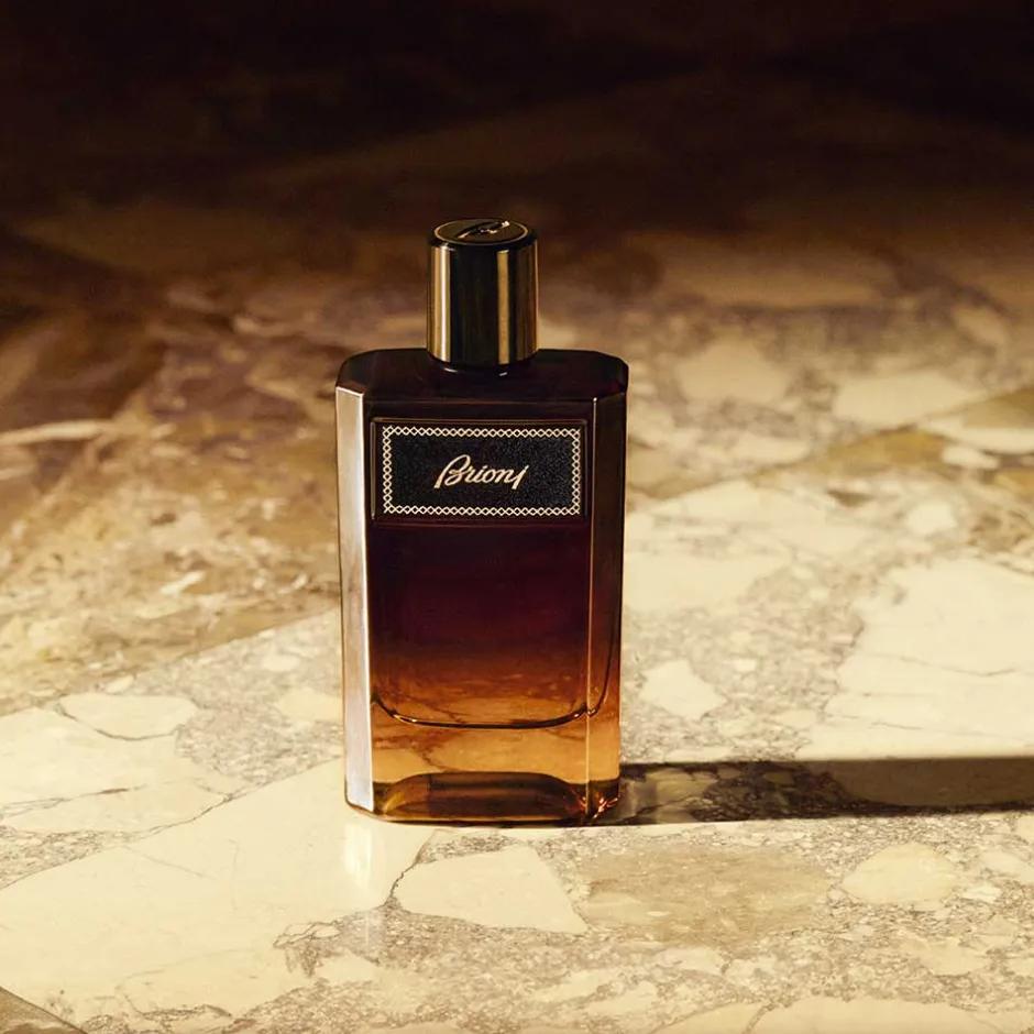 Der Flakon des Brioni Eau de Parfum präsentiert sich in einem eleganten, klaren Design, das die visuelle Ästhetik auf den Punkt bringt. Die schlanke, rechteckige Form ist Ausdruck zeitloser Raffinesse und unterstreicht die edle Aura des Inhalts. Der warme, bernsteinfarbene Farbverlauf des Glases fängt das Licht auf besondere Weise ein und gleicht einem goldenen Schimmer, der den luxuriösen Charakter des Duftes hervorhebt. Abgerundet wird das gesamte Erscheinungsbild durch einen schwarz glänzenden Verschluss, der optisch perfekt harmoniert. Dieses Design zeugt von einer durchdachten Eleganz, die sowohl modern als auch klassisch anmutet.