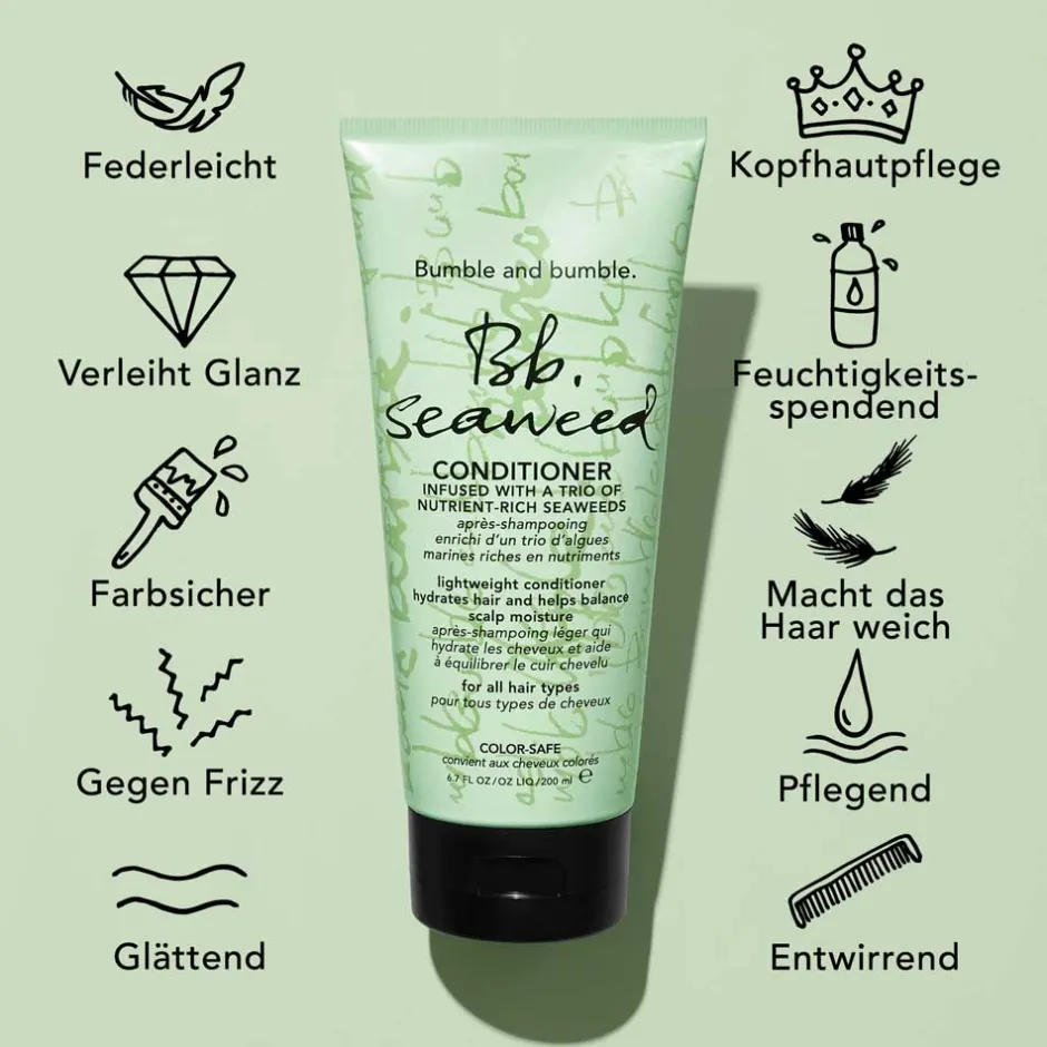Der Bumble and bumble Bb. Seaweed Conditioner ist eine exquisite Kreation, die Ihre Haare mit den nährstoffreichen Extrakten aus Meeresalgen verwöhnt. Diese besondere Formel versorgt Ihr Haar intensiv mit Feuchtigkeit und fördert zugleich Geschmeidigkeit. Durch die Stärkung des Kopfhautmilieus wird eine gesunde Haarstruktur unterstützt, die Ihre Haare nachhaltig belebt. Der Conditioner integriert sich mühelos in Ihre tägliche Duschroutine und hinterlässt Ihr Haar voller Lebendigkeit, ganz ohne Rückstände. Er ist farbsicher und somit ideal für gefärbtes Haar, das besondere Pflege benötigt.