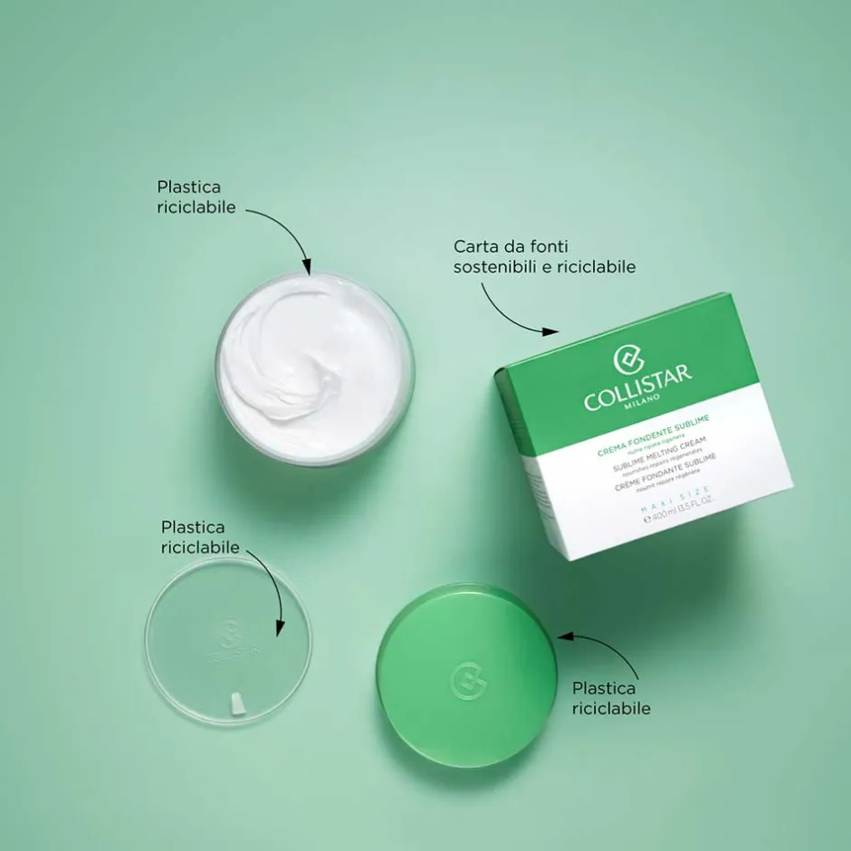 Die Collistar Sublime Melting Cream präsentiert sich in einem eleganten Behälter, der durch seine harmonische Form und Farbgebung besticht. Der Behälter ist in einer klassischen, klaren Farbpalette gehalten, die perfekt zu seiner außergewöhnlichen Formel passt. Der grüne Deckel kontrastiert stilvoll mit dem weißen Unterteil, wodurch das Produkt in jedem Badezimmer ein dekoratives Element darstellt. Die schlanke, abgerundete Form des Behälters sorgt für eine angenehme Haptik und einfache Handhabung. Diese ästhetische Gestaltung spiegelt die Hochwertigkeit und Exklusivität der Pflege wider, die Sie erwarten dürfen.