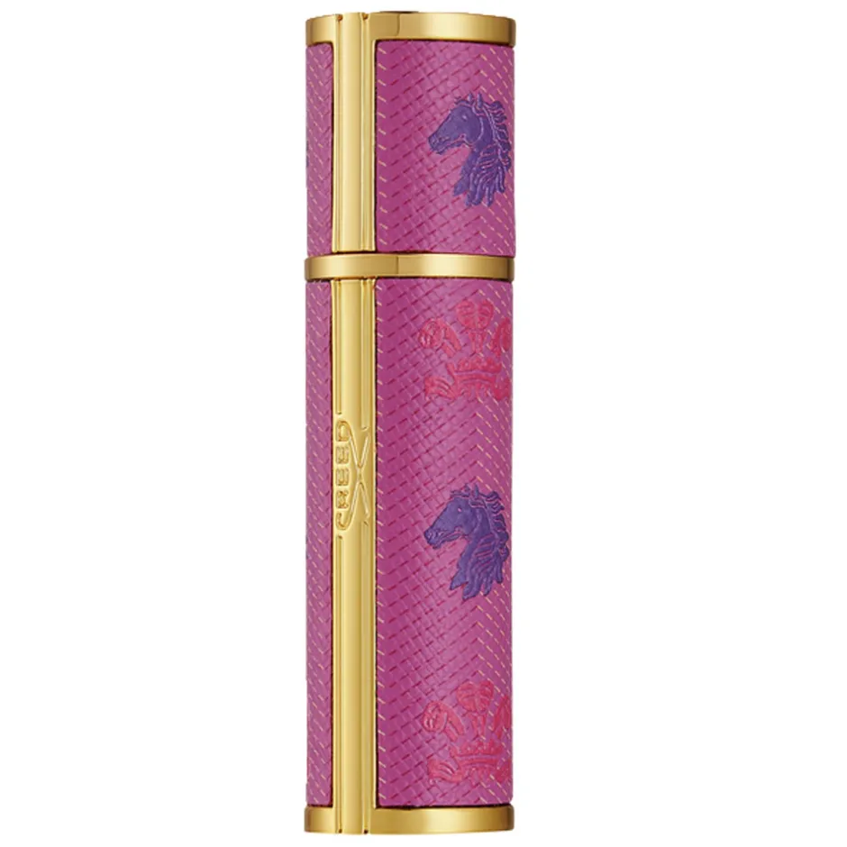 Der Creed Refillable Travel Spray beeindruckt mit seinem exquisiten Erscheinungsbild. Das edle Leder in einem intensiven Farbton wird von feinen goldenen Akzenten stilvoll hervorgehoben. Die schlanke, zylindrische Form schmiegt sich perfekt in Ihre Hand und passt in jede Tasche, während die filigranen Details des Designs einen Hauch von Luxus versprühen. Ein elegantes Pferdemotiv ziert die Oberfläche, was dem Flakon eine unverwechselbare Note verleiht. Diese einzigartige Kombination aus Form und Schönheit macht den Zerstäuber zu einem unverzichtbaren Begleiter für alle, die Wert auf Stil und Qualität legen.