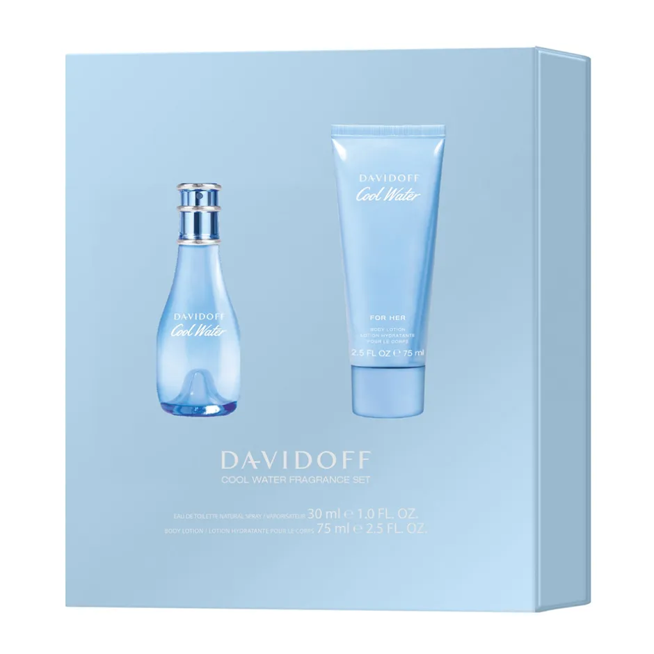 Dieses Set enthält: – Davidoff Cool Water Eau de Toilette für Damen 30 ml – Davidoff Cool Water Bodylotion für Damen 75 ml