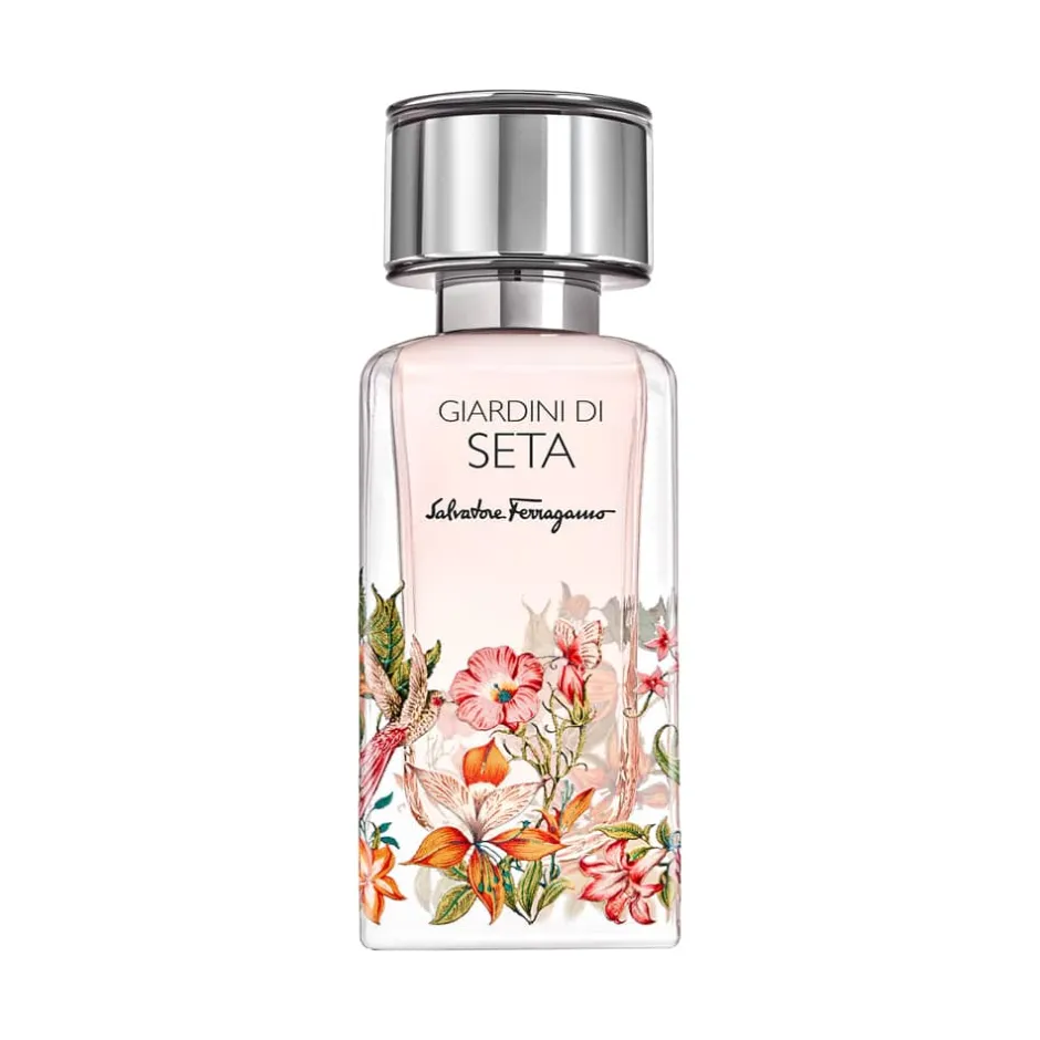 Der Flakon des Ferragamo Giardini di Seta besticht durch sein raffiniertes und kunstvolles Design. Die klare, schlanke Form vermittelt eine elegante Leichtigkeit, während die floralen Muster in lebendigen Farben den Flakon zu einem echten Blickfang machen. Die Kombination aus zarten Blütenmotiven und kräftigen Farbakzenten spiegelt die dynamische Energie des Duftes wider. Der silberne Verschluss verleiht dem Design eine edle Vollendung und unterstreicht die hochwertige Anmutung dieses außergewöhnlichen Parfums.