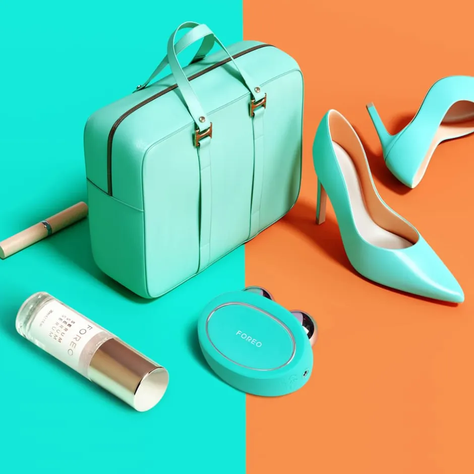Optisch begeistert das Foreo Gerät zur Gesichtsstraffung mit einem ansprechenden, ergonomischen Design in lebendigem Türkis. Der Körper aus körperfreundlichem Silikon und verchromter Zinklegierung liegt angenehm in der Hand und ist äußerst leicht. Die zwei kugelförmigen Elektroden verleihen dem Gerät eine verspielte, dennoch hochwertige Anmutung. Im Lieferumfang enthalten sind ein USB-Ladekabel, ein praktisches Reisetäschchen, ein Ständer sowie eine 2 ml Serum-Probe. Eine Schnellstartanleitung erleichtert den Einstieg in die Anwendung. Die Verbindung zu einer App für iOS und Android ermöglicht eine individuelle Anpassung und einfache Bedienung. Dieses Set bietet alles, was Sie für eine effektive und komfortable Gesichtspflege benötigen.
