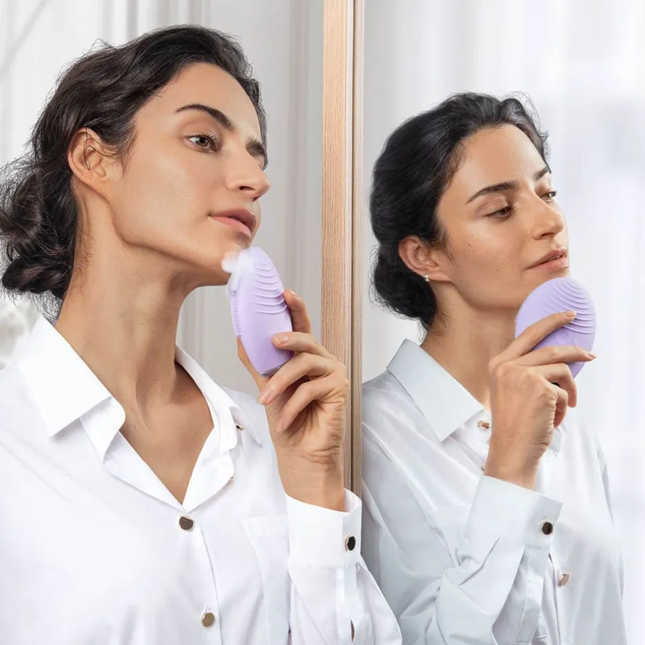 Das Design des Foreo Smartes 2-in-1-Gesichtsreinigungs- und Straffungsgeräts besticht durch seine geschwungene, ergonomische Form, die perfekt in der Hand liegt. Die zarten Silikontouchpoints sind in einem zarten Lavendelton gehalten und bieten eine luxuriöse Haptik. Die nahtlose Verarbeitung und das kompakte Design machen es nicht nur zu einem optischen Highlight, sondern auch zu einem idealen Begleiter auf Reisen. Mit dem praktischen Travel Lock bleibt das Gerät sicher und bereit für den Einsatz. Die Verbindung von Funktionalität und Ästhetik macht es zu einem unverzichtbaren Element Ihrer täglichen Hautpflegeroutine.