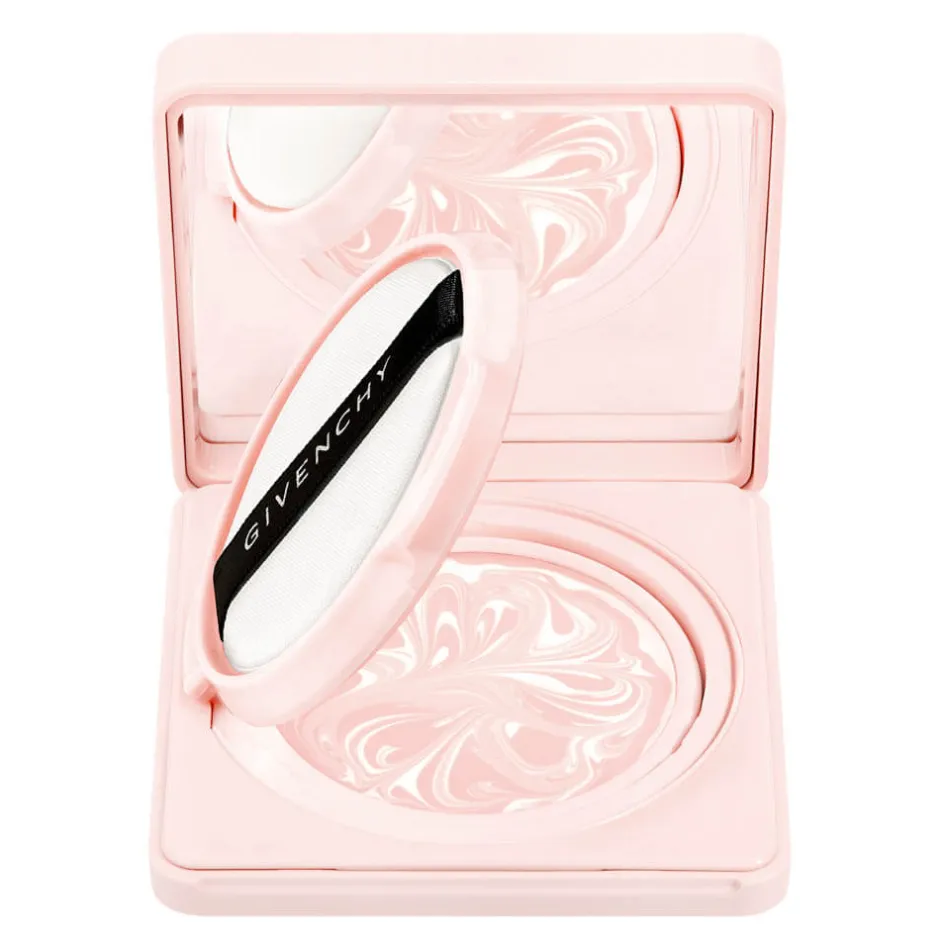 Das Design der Givenchy Compact Cream kombiniert Eleganz mit Funktionalität. Die kompakte Form sorgt dafür, dass sie ideal für unterwegs ist, während die zarte rosa-weiß marmorierte Textur nicht nur optisch, sondern auch haptisch ein Erlebnis bietet. Der luxuriöse, in zartem Rosa gehaltene Behälter besticht durch seine klare Linienführung und sein durchdachtes Design. Ein integrierter Spiegel ermöglicht es Ihnen, jederzeit und überall für einen frischen Look zu sorgen. Das Givenchy-Logo auf dem Applikator rundet das edle Erscheinungsbild ab und verleiht dem Produkt eine exklusive Note. Dies ist nicht nur eine Pflege, sondern ein stilvolles Accessoire, das Ihre tägliche Schönheitsroutine bereichert.