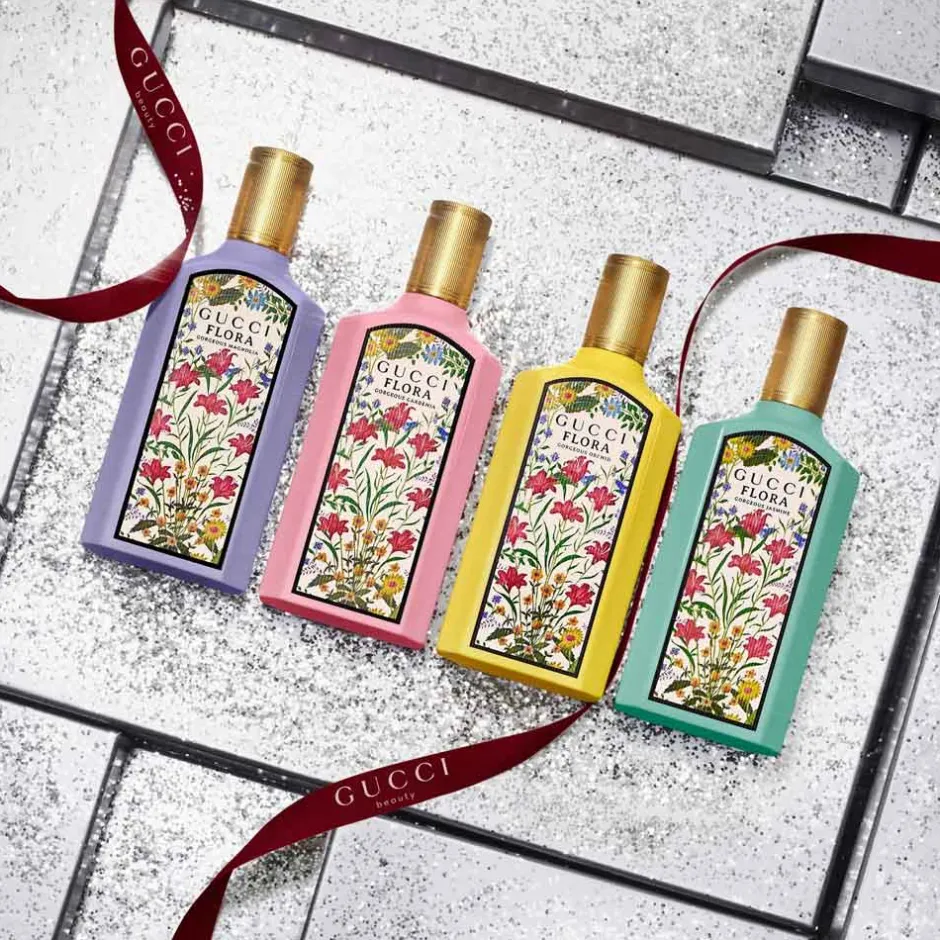 Der Flakon des Gucci Eau de Parfum Sets präsentiert sich in einem eleganten Design, das die florale Inspiration des Duftes widerspiegelt. Seine klare Form und die zarten, blumigen Verzierungen verleihen ihm eine zeitlose Schönheit. Der goldene Verschluss setzt einen edlen Akzent und rundet das Gesamtbild stilvoll ab. Das Miniature Eau de Parfum ergänzt das Set mit seinem praktischen Format und ist perfekt für die Handtasche geeignet. Zusammen bilden sie ein visuelles und olfaktorisches Erlebnis voller Raffinesse.