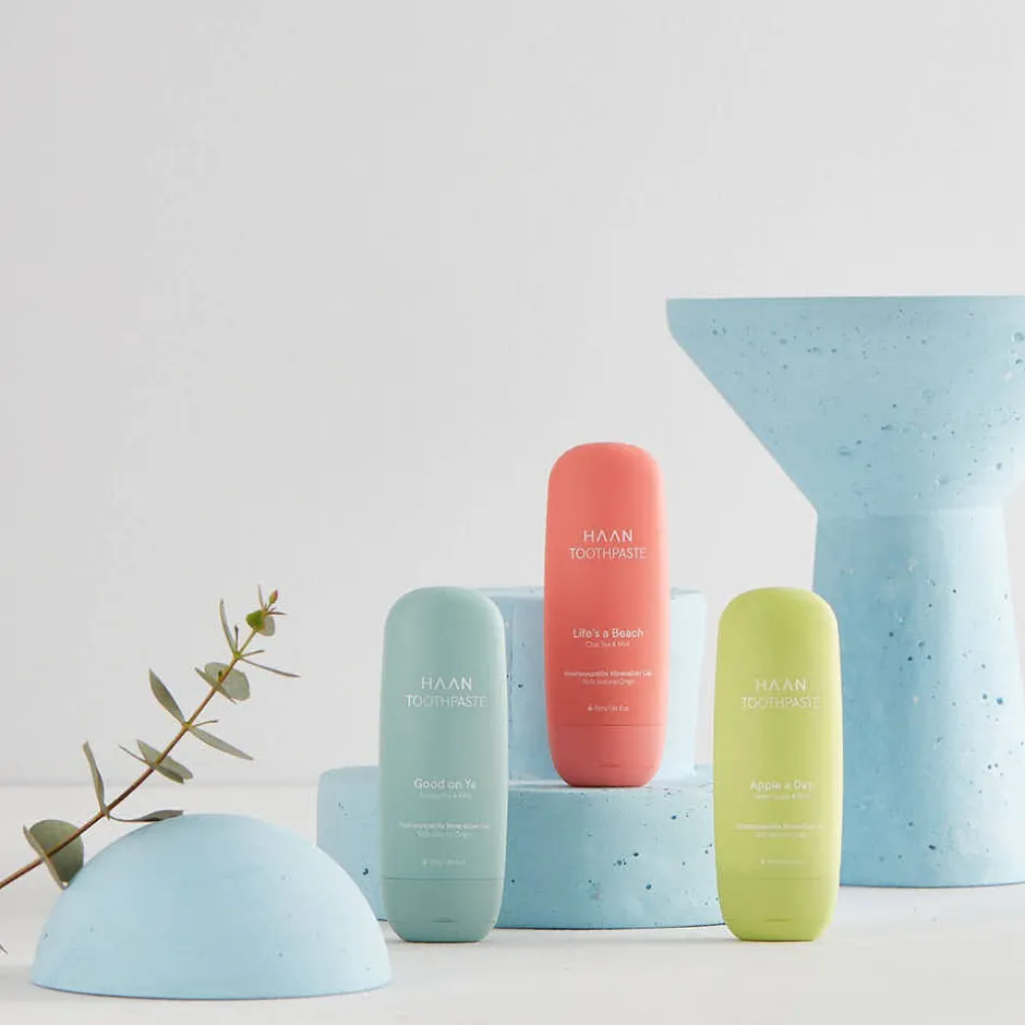 Die Tube der HAAN Toothpaste ist ein Paradebeispiel für formschönes, modernes Design. In einem lebhaften Koralleton gehalten, strahlt sie Energie und Lebendigkeit aus. Die geschwungene Form liegt angenehm in der Hand und ist ideal für unterwegs. Mit ihrer kompakten Größe passt sie problemlos in jede Reisetasche, während die robuste Konstruktion für Langlebigkeit sorgt. Der schlichte Schriftzug verleiht der Verpackung eine elegante Note und rundet das minimalistische Design ab. Ein Produkt, das Funktionalität und Ästhetik in perfekter Harmonie vereint.