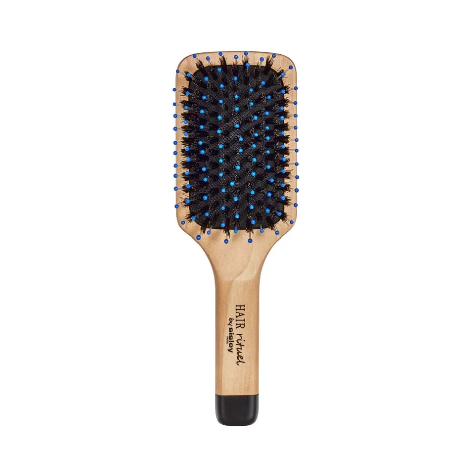 Die HAIR RITUEL by Sisley Pocket Brush ist Ihr verlässlicher Begleiter für die tägliche Haarpflege. Diese exquisite Paddle Bürste vereint die Vorzüge von Wildschweinborsten mit speziell entwickelten, geschmeidigen Borsten. Diese einzigartige Kombination ermöglicht ein sanftes Entwirren Ihrer Haare und stimuliert gleichzeitig die Kopfhaut, was die natürliche Schönheit Ihrer Haare zur Geltung bringt. Mit jeder Anwendung werden Unreinheiten effektiv entfernt, und Ihr Haar wird in einen faszinierenden Glanz getaucht, da es das Licht optimal reflektieren kann. Genießen Sie das Gefühl von geschmeidigem, glänzendem Haar, das Sie strahlen lässt.