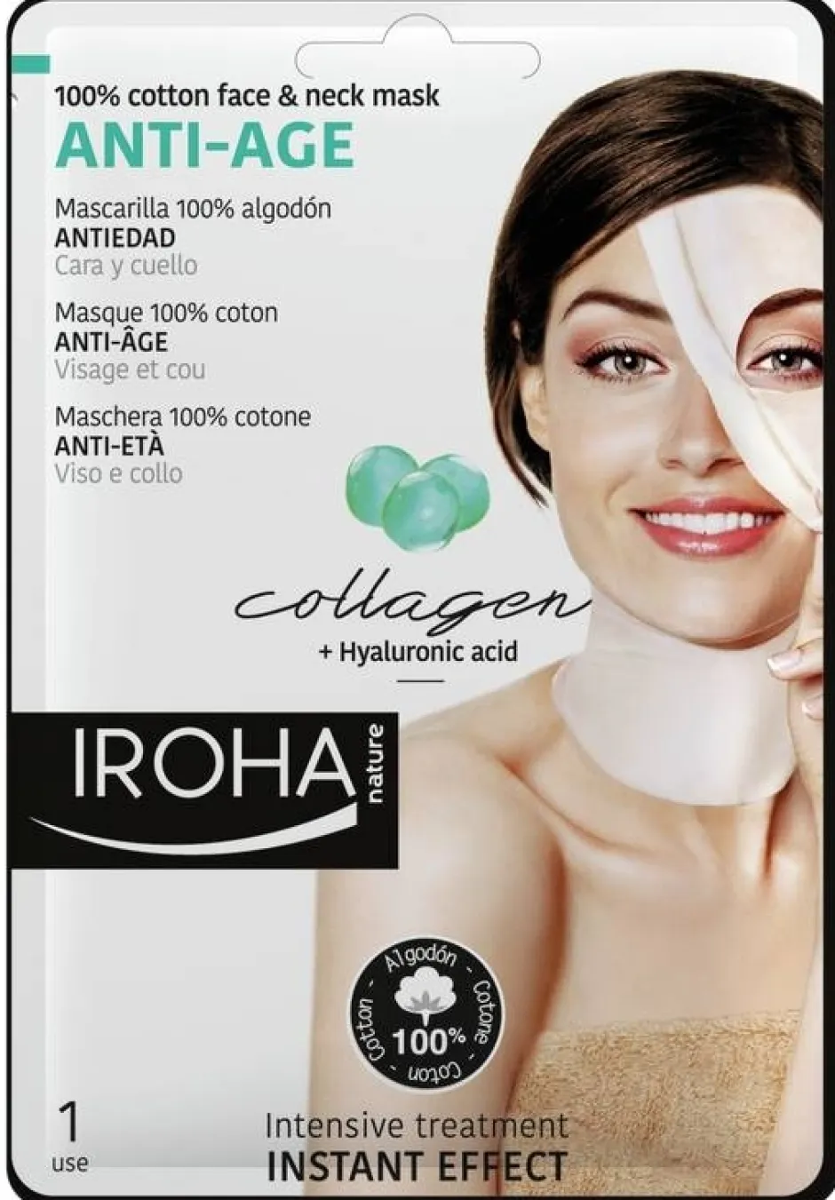 Die Iroha Anti-Age 100% Cotton Face & Neck Mask bietet Ihnen ein luxuriöses Pflegeerlebnis, das speziell für die Bedürfnisse reifer Haut entwickelt wurde. Durch das hochwertige Baumwollgewebe passt sich die Maske perfekt den Konturen von Gesicht und Hals an und sorgt für ein angenehmes Tragegefühl. Ein wertvolles Serum, angereichert mit Collagen, Hyaluronsäure und ausgewählten Inhaltsstoffen, durchdringt die Hautschichten und fördert die Elastizität und Geschmeidigkeit. Innerhalb von nur 15 Minuten erleben Sie professionelle Ergebnisse in den eigenen vier Wänden. Empfohlen von Experten der ästhetischen Medizin, unterstützt diese Maske Ihre Haut dabei, ihre jugendliche Ausstrahlung zurückzugewinnen. So wird Ihre tägliche Schönheitsroutine zu einem besonderen Verwöhnmoment.