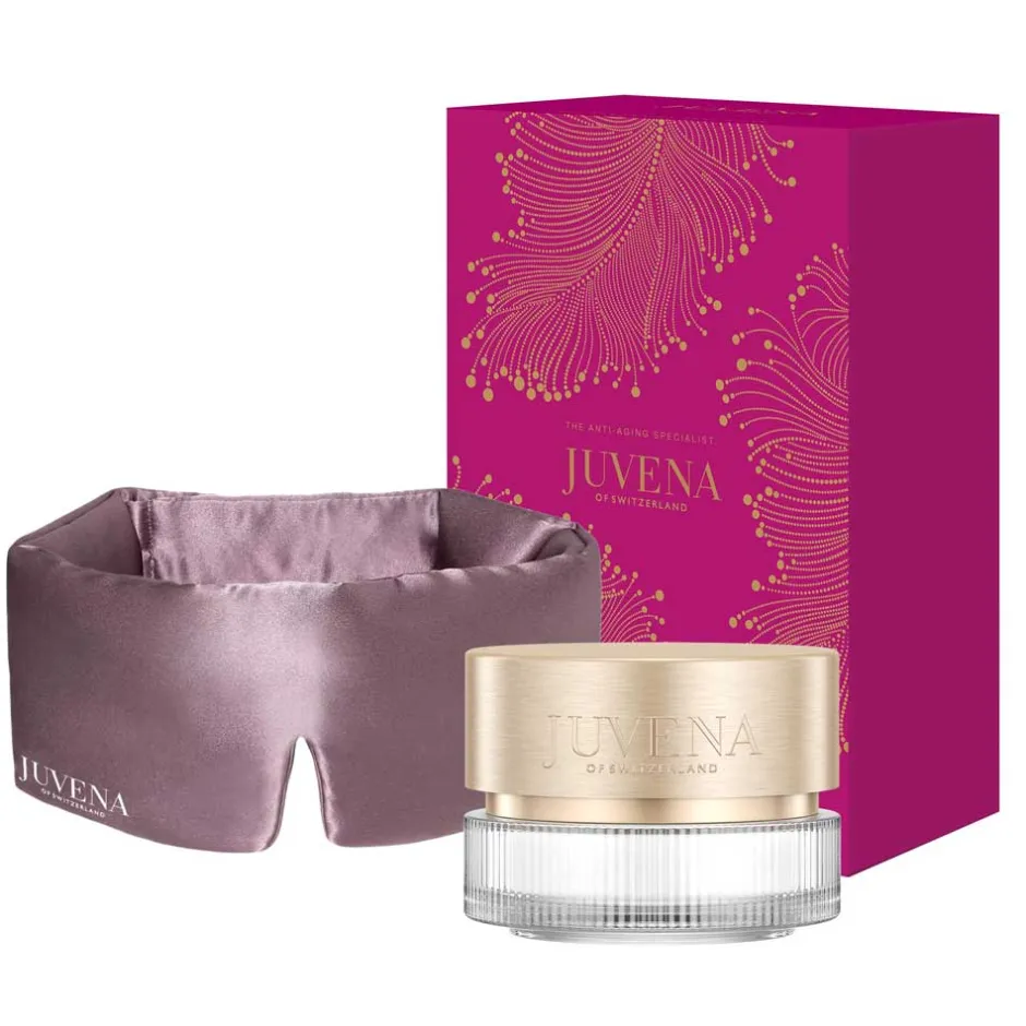 Das Juvena Gesichtspflege Set besticht durch seine elegante Gestaltung. Der Tiegel der Superior Miracle Cream präsentiert sich in einem klaren, geradlinigen Design, das sofort Professionalität und Klasse ausstrahlt. Der goldene Deckel fügt einen Hauch von Luxus hinzu und hebt die wertvolle Formel im Inneren stilvoll hervor. Begleitet wird die Creme von einer luxuriösen Schlafmaske, deren samtige Textur optimalen Tragekomfort bietet. Zusammen in einer edlen Box verpackt, wird dieses Set zu einem wahren Schmuckstück in Ihrem Pflegearsenal.