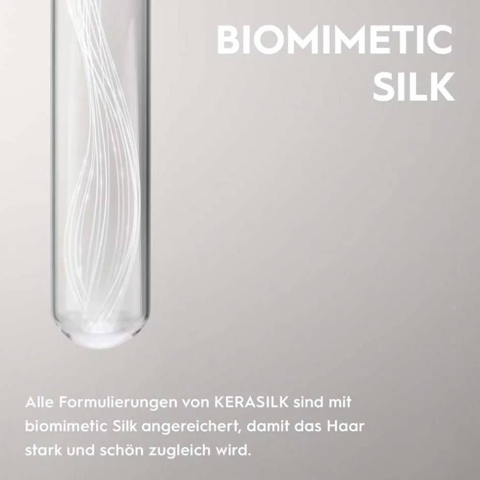Der Kerasilk Bändigender Balsam ist die Antwort auf die Bedürfnisse von trockenem und geschädigtem Haar. Mit der Kraft von biomimetischer Seide und Hyaloveil® schenkt er Ihrem Haar eine intensive Pflege, die es stark und genährt erscheinen lässt. Die vegane Formulierung sorgt dafür, dass das Haar bis zu 15-mal widerstandsfähiger gegen Haarbruch wird, während es gleichzeitig bis zu 97 % weniger gespaltene Spitzen aufweist. Durch den Schutz vor erneuter Trockenheit und Hitzeschäden wird das Haar nicht nur elastischer, sondern erhält auch eine lebendige Strahlkraft zurück. Der Balsam ist frei von Silikonen, Sulfaten und Farbstoffen und somit ideal für chemisch behandeltes oder gestresstes Haar, das eine Extraportion Pflege benötigt.