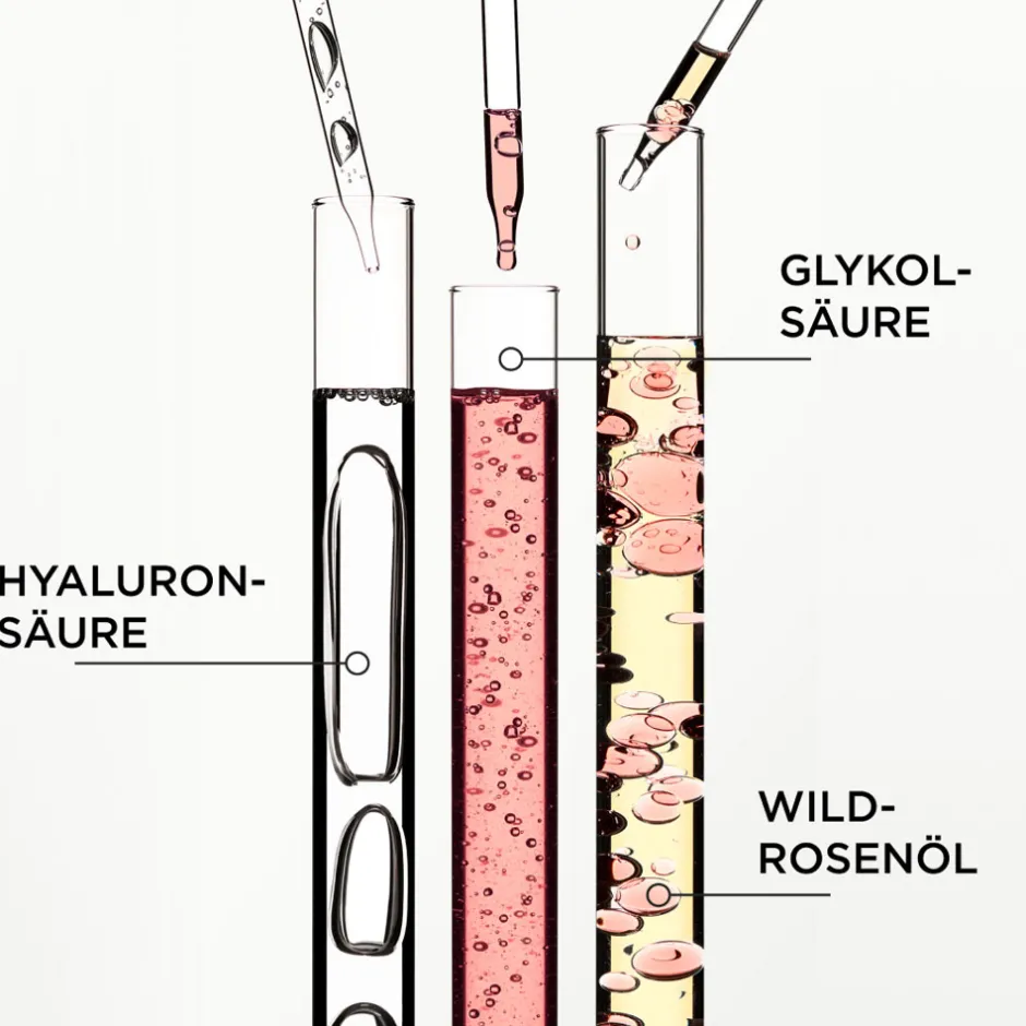 - Formuliert mit Hyaluronsäure, Glykolsäure und Wildrosenöl