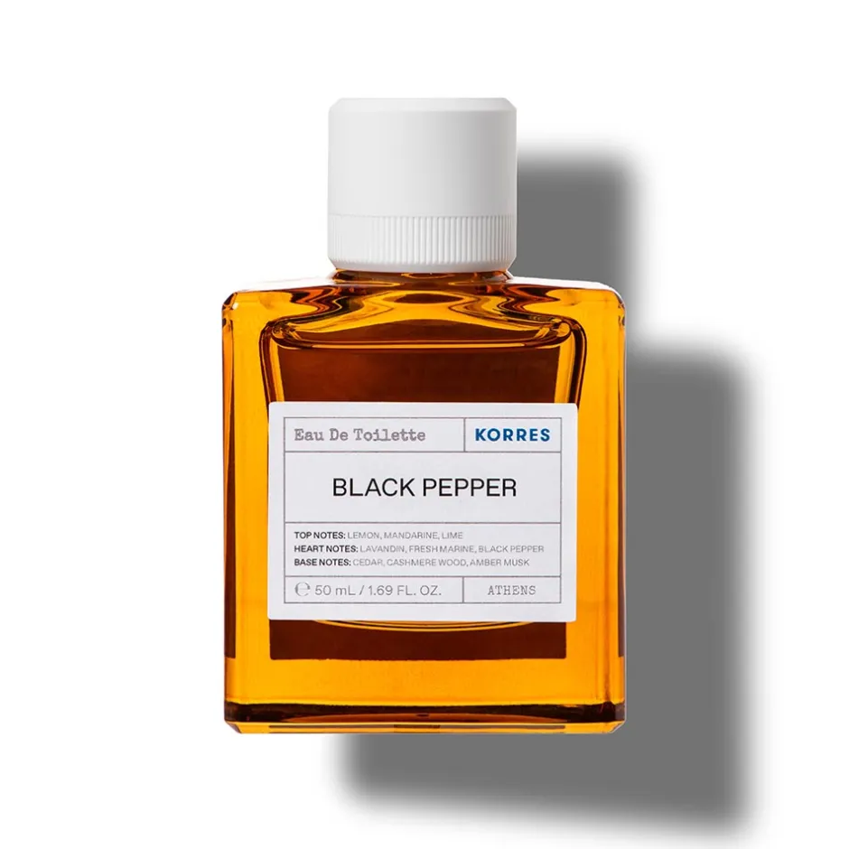 Das KORRES Black Pepper Eau de Toilette Nat. Spray entführt Sie in eine Welt voll intensiver Duftnoten. Die frischen Zitrusklänge von Zitrone, Mandarine und Limette eröffnen das olfaktorische Erlebnis und verleihen ihm eine belebende Frische. Im Herzen entfalten sich die würzigen und zugleich raffinierten Noten von Lavendel, schwarzem Pfeffer und frischen Meeresakkorden, die dem Duft eine unverwechselbare Tiefe verleihen. Die Basisnoten verankern den Duft in einer sinnlichen, holzigen Wärme. Zedernholz, Kaschmirholz und Ambra vermengen sich mit dem erdigen Duft der Zitronenbaumrinde und kreieren so eine anhaltende, elegante Präsenz. Die faszinierende Geschichte des schwarzen Pfeffers, von vergangenen Zeiten bis zur Gegenwart, schwingt in diesem luxuriösen Duft mit und verleiht ihm eine geheimnisvolle Aura.