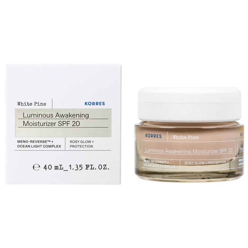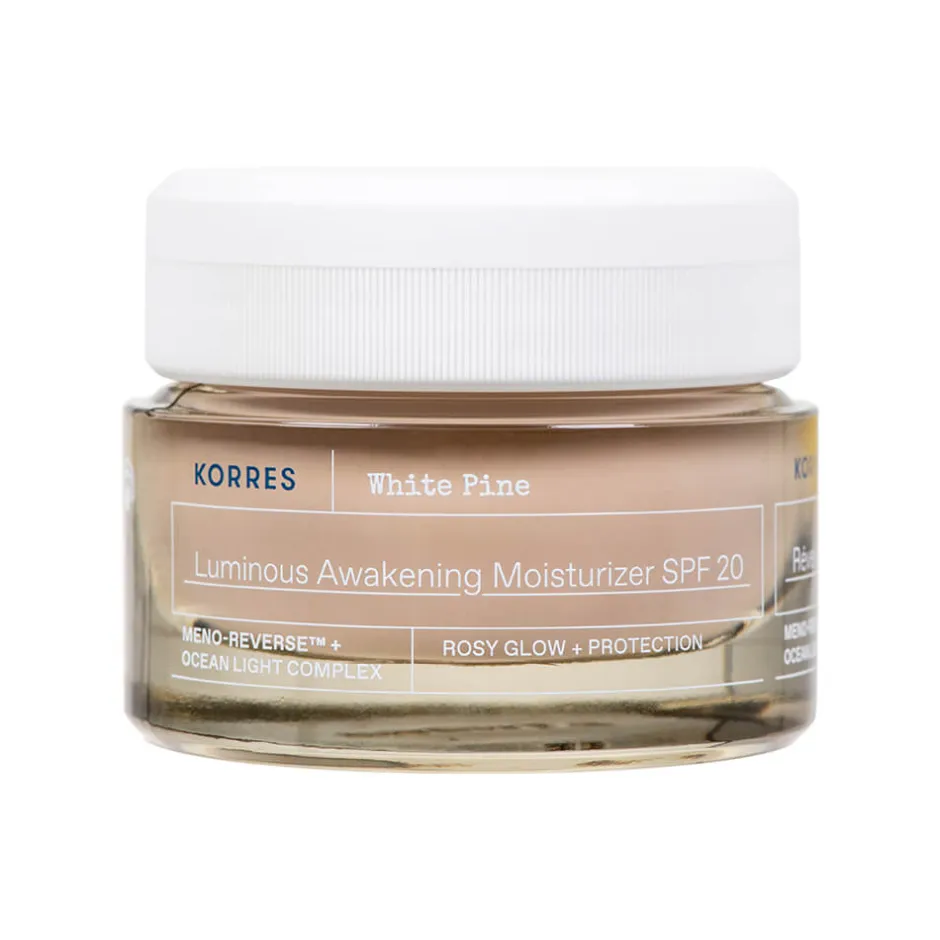 Erleben Sie ein strahlendes Hautbild mit der KORRES White Pine Feuchtigkeitscreme für strahlende Haut. Diese exquisite Pflegeformel kombiniert die innovative Meno-Reverse™-Technologie mit dem nährenden Ocean Light Complex, um Ihre Haut sichtbar zu verjüngen und zu straffen. Die rosé-getönte Textur verschmilzt sanft mit Ihrer Haut, während der integrierte SPF 20 einen zuverlässigen Schutz vor schädlichen UV-Strahlen bietet. Speziell entwickelt für die Bedürfnisse der Haut nach den Wechseljahren, revitalisiert diese Creme Ihre Haut und verleiht ihr einen gesunden, rosigen Glanz. Gönnen Sie Ihrer Haut die Pflege, die sie verdient, und fühlen Sie sich jeden Tag strahlend schön.