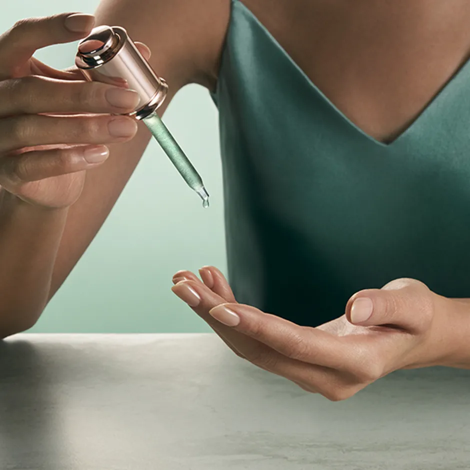 Das La Mer The Micro Peel Oil beeindruckt durch sein elegantes Design. Der Flakon strahlt in einem tiefen, beruhigenden Grün, das sofort einen Hauch von Luxus vermittelt. Die schlanke, zylindrische Form liegt angenehm in der Hand und spricht für erlesene Verarbeitung. Der goldene Verschluss ergänzt das edle Erscheinungsbild und unterstreicht die Exklusivität dieses Produkts. Diese optische Gestaltung verkörpert Raffinesse und macht das Produkt zu einem Highlight in jedem Badezimmer.