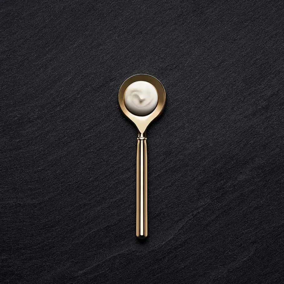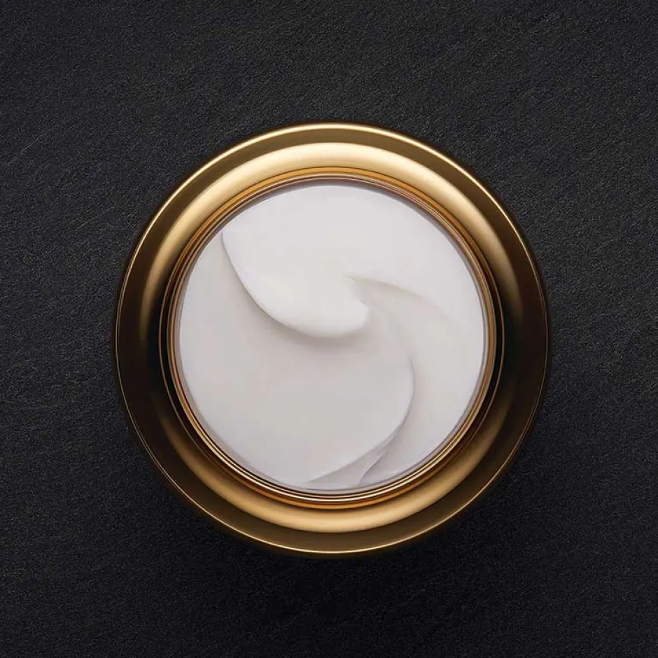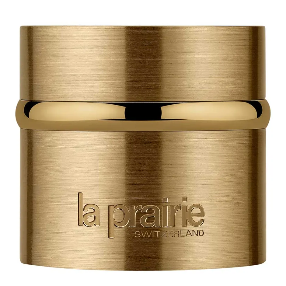 Die La Prairie Pure Gold Radiance Cream präsentiert sich in einem eleganten, goldfarbenen Behälter, der Luxus und Exklusivität ausstrahlt. Das runde Design mit seinem sanften Schimmer und den klaren Linien wirkt zeitlos und stilvoll. Der Deckel schließt nahtlos ab und unterstreicht die Hochwertigkeit des Produkts. Diese detailreiche Gestaltung reflektiert die Feinheit und Präzision, die La Prairie ausmacht, und macht die Creme zu einem wahren Schmuckstück für Ihr Pflege-Ritual.