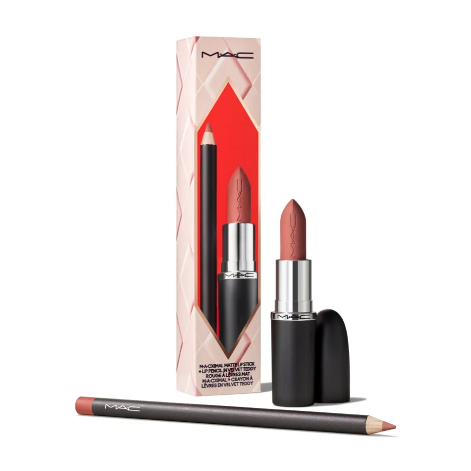 Nostalgisch gestimmt? Mach es dir mit diesem Lippen-Set gemütlich, das den meistverkauften M·A·Cximal Silky Matte Lipstick und Lip Pencil in Velvet Teddy enthält. Der M·A·Cximal Silky Matte Lipstick bietet 12 Stunden lang volle Deckkraft und acht Stunden lang Feuchtigkeit. Der Lip Pencil hat eine geschmeidige, cremige Textur, die sich perfekt zum Konturieren und Ausfüllen der Lippen eignet. In einer exklusiven Weihnachtsverpackung zu einem M·A·Cnificent-Preis.