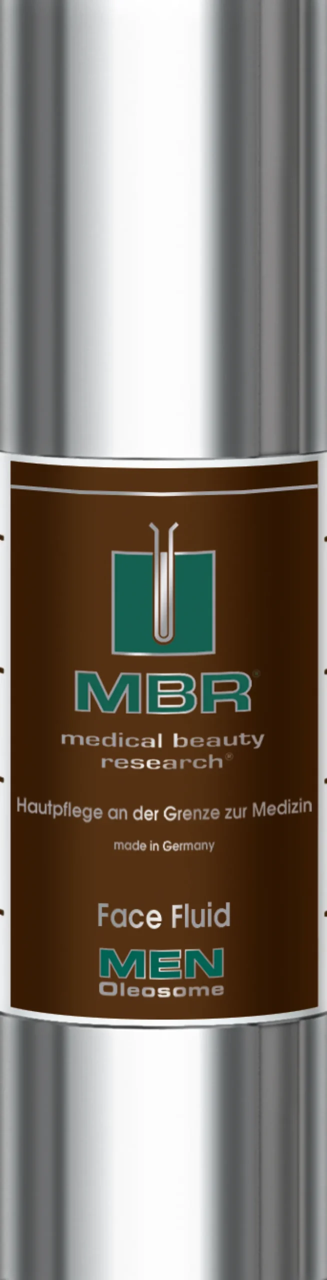 Optisch überzeugt das MBR Face Fluid durch ein klares und modernes Design. Der silberne Flakon wirkt elegant und zeitlos und harmoniert perfekt mit dem braunen Etikett, das sich auf das Wesentliche konzentriert. Der schlanke, zylindrische Behälter liegt angenehm in der Hand und ist praktisch in der Anwendung. Das minimalistische Design unterstreicht die Hochwertigkeit des Produkts und macht es zu einem stilvollen Begleiter in Ihrer täglichen Pflegeroutine.