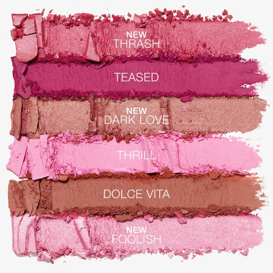 Faszinierend. Vielschichtig. Entdecke die limitierte Ethereal Aura Blush Palette in „New Realm“ – sechs atemberaubende Farben in matten und schimmernden Finishes. Verleihe Deinem Look neue Dimensionen mit den ikonischen Blush-Pudern, die sich aufbauen und mühelos verblenden lassen – für ein mehrdimensionales Farb-Highlight. FARBEN ENTHALTEN: THRASH (schimmerndes Himbeerrosa) DARK LOVE (schimmerndes Rosenrot) THRILL (matte, kühles Hellrosa) TEASED (mattes Fuchsia) DOLCE VITA (mattes Rosenrot)