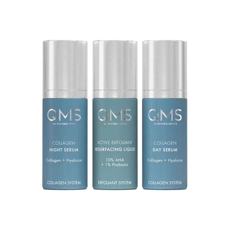 Das Day & Night 3-Step Core Routine Set Strong, bestehend aus 10% AHA Active Exfoliating Resurfacing Fluid, Collagen Day Serum und Collagen Night Serum, ist die elementare Basis deiner täglichen Hautpflege.