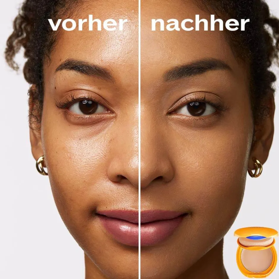 Diese Foundation kommt in einem eleganten, orangefarbenen Kompaktgehäuse, das mit seiner runden Form perfekt in der Hand liegt. Der praktische Spiegel ermöglicht ein müheloses Auffrischen unterwegs. Die Kombination aus kräftigem Orange und einem schlichten, klaren Design verleiht dem Produkt eine ansprechende, moderne Optik. Der kompakte Schwamm im Inneren unterstützt eine gleichmäßige Anwendung und findet seinen Platz sicher unter dem aufklappbaren Deckel. Die nachfüllbare Eigenschaft des Gehäuses reduziert Plastikverbrauch, was einen zukunftsorientierten und umweltfreundlichen Ansatz unterstreicht.