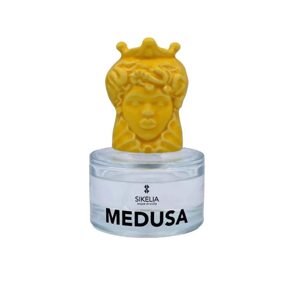 Der Flakon des SIKELIA Eau de Parfum ist ein wahres Kunstwerk. Gekrönt mit einer skulpturalen Darstellung der Medusa, die in einem satten Gelb erstrahlt, zieht er alle Blicke auf sich. Die Detailverliebtheit zeigt sich in jeder Falte und jeder Locke dieser majestätischen Figur. Der transparente, zylindrische Glasflakon bietet einen klaren Kontrast zur opulenten Kappe und lässt den Duft im Inneren sanft durchscheinen. Seine kompakte, dennoch elegante Form macht ihn zu einem idealen Begleiter für jede Gelegenheit. Dieses Parfum ist nicht nur ein Duft, sondern ein visuelles Highlight, das Ihrem täglichen Ritual eine feine Note von Dramatik und Eleganz verleiht. Lassen Sie sich von der einzigartigen Ästhetik inspirieren und entdecken Sie die Geschichten, die dieser Flakon erzählt.