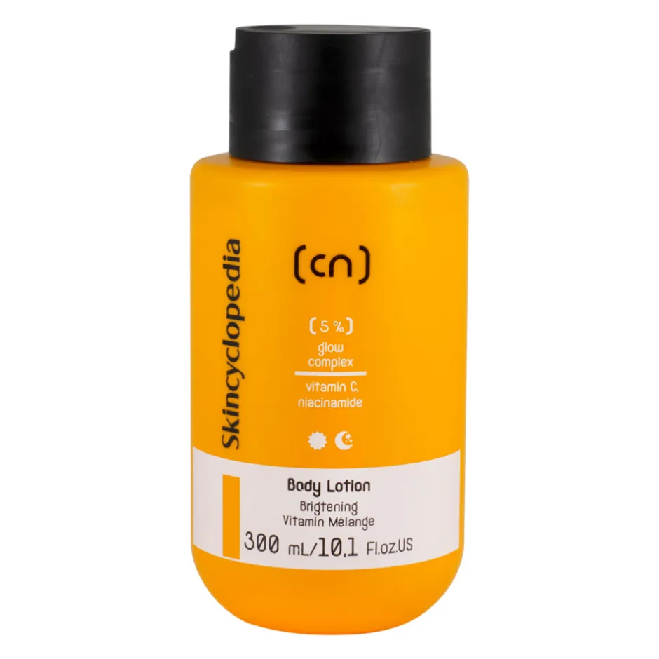 Die Skincyclopedia Body Lotion 5% Glow Complex schenkt Ihrer Haut eine lebendige Ausstrahlung. Mit einer einzigartigen Rezeptur aus Vitamin C, Niacinamid und Vitamin E verbessert diese Lotion das Hautbild sichtbar, indem sie fahler Haut entgegenwirkt und den Hautton harmonisiert. Die dermatologisch getestete Lotion ist für alle Hauttypen geeignet und verleiht Ihrer Haut ein revitalisiertes Aussehen. Dank des erfrischenden Dufts von Zitrusfrüchten und Neroli wird jede Anwendung zu einem sinnlichen Vergnügen. Die pflegende Formel zieht schnell ein und lässt Ihre Haut gesund und strahlend erscheinen. Bitte beachten Sie: Verwenden Sie die Lotion nicht in Kombination mit Retinoiden oder exfolierenden Säuren.