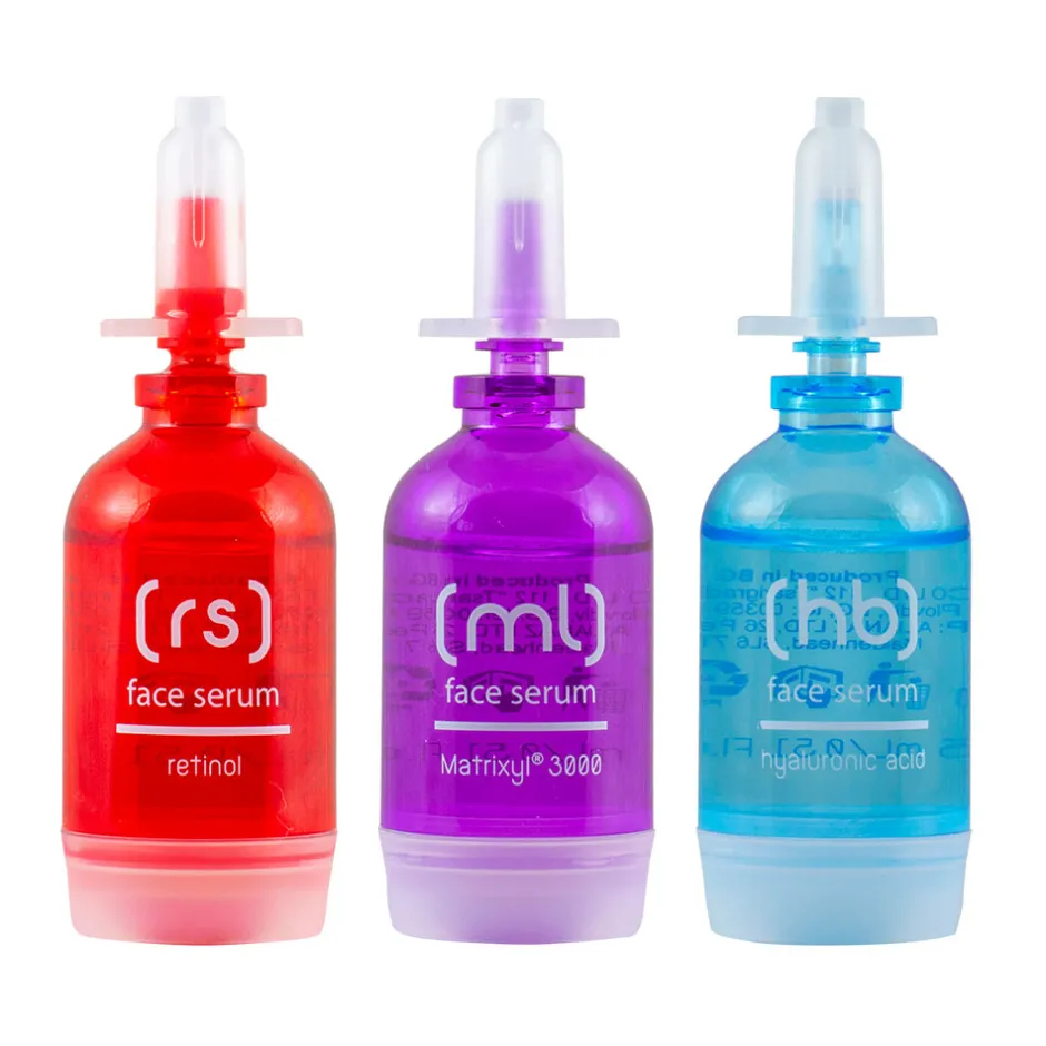 Das Skincyclopedia Age Refine Guide Set beeindruckt durch seine ansprechende, moderne Aufmachung. Jedes Serum befindet sich in einem präzise gestalteten Flakon, der Funktionalität und Ästhetik vereint. Der rote Behälter des Retinol-Serums strahlt Intensität aus, während das violette Matrixyl®3000-Serum mit seiner klaren Farbgebung die Aufmerksamkeit auf sich zieht. Das blaue Hyaluronsäure-Serum verkörpert Frische und Reinheit und bildet den idealen Abschluss der Routine. Diese optische Vielfalt unterstreicht die Einzigartigkeit jedes Pflegeprodukts und ergänzt das Gesamtkonzept der Hautpflege perfekt.