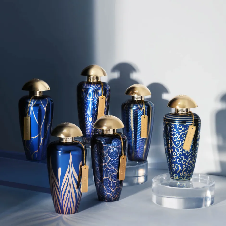 Der Flakon von Vinegia 21 ist ein Kunstwerk für sich und spiegelt die Eleganz und Tradition Venedigs wider. Die schlanke, elegante Form wird durch ein faszinierendes Muster in Blau und Gold akzentuiert, das an die kunstvollen Mosaiken der Stadt erinnert. Der goldene Verschluss verleiht dem Design eine königliche Note und unterstreicht den luxuriösen Charakter des Parfums. Der Flakon ist nicht nur ein Behälter für den Duft, sondern ein dekoratives Element, das jeden Raum schmückt. Jedes Detail wurde sorgfältig durchdacht, um die zeitlose Schönheit und den kulturellen Reichtum Venedigs widerzuspiegeln.