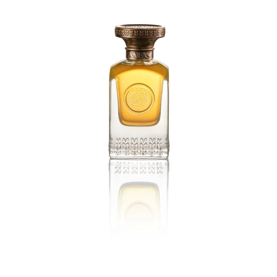 Der Flakon des ANFAS Eau de Parfum ist ein Meisterwerk für sich. Seine klare, elegante Form besticht durch schlichte Linienführung, die zeitlose Klasse ausstrahlt. Die bernsteinfarbene Flüssigkeit scheint im harmonischen Kontrast zum massiven Glas zu schweben, während der kunstvoll gestaltete Verschluss einen Hauch von Luxus verleiht. Das subtile Spiel von Licht und Schatten auf der Oberfläche des Flakons verstärkt die visuelle Anziehungskraft und macht ihn zu einem wahren Schmuckstück Ihrer Sammlung. Jeder Blick auf dieses Design erinnert an die hochwertige Handwerkskunst, die die Essenz dieses Duftes in sich trägt.
