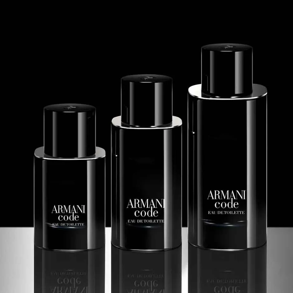 Der ikonische Herrenduft Armani Code Eau de Toilette präsentiert sich im neuen Design mit einem luxuriösen und nachfüllbaren Flakon. Der elegante Duft verkörpert die Stimmung verführerischer, sensibler Maskulinität und beschreibt die Duftphilosophie „REWRITE THE CODE“ für den modernen und zukunftsorientierten Mann.