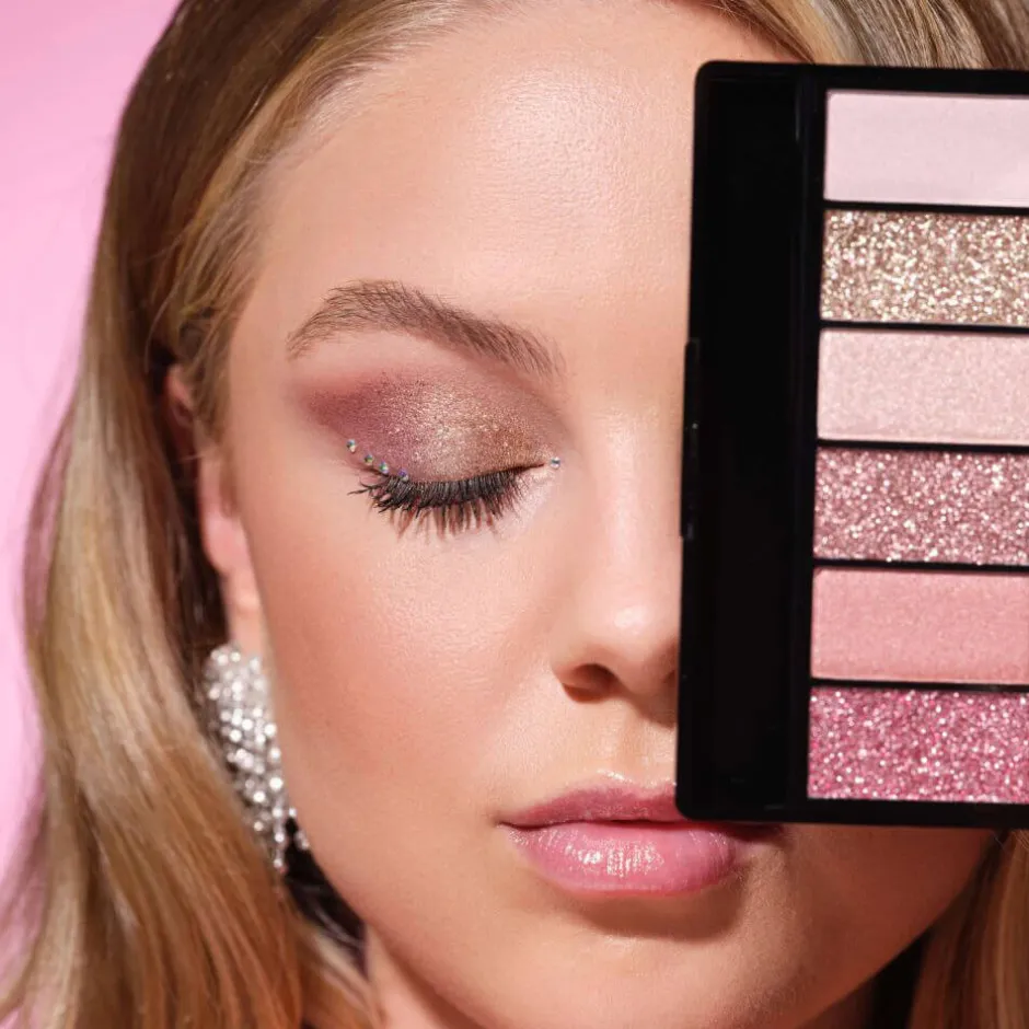 - Palette mit drei pearligen und drei glitzernden Puderlidschatten