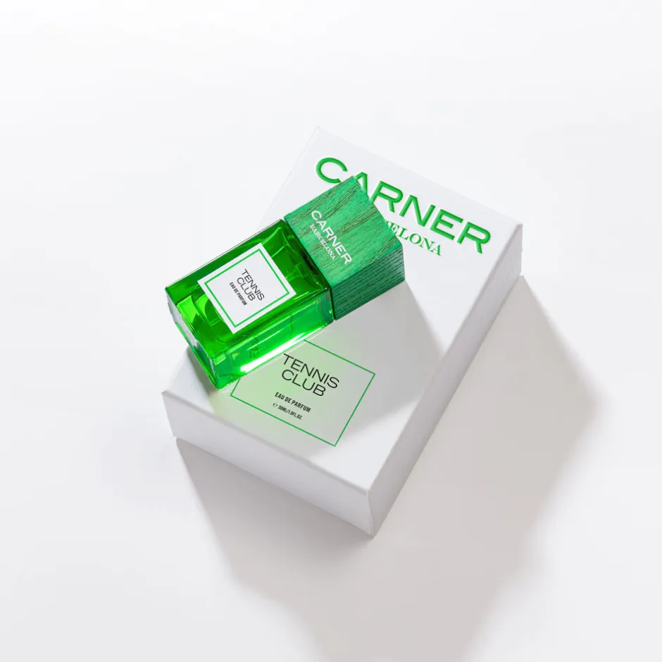 Der Flakon des Carner Barcelona Tennis Club Eau de Parfum Sprays spricht durch sein klares, modernes Design an. Er besticht durch seine leuchtend grüne Farbe, die die Frische des Duftes widerspiegelt. Der Flakon wird von einem eleganten Holzdeckel gekrönt, der einen warmen Kontrast zur kühlen Farbgebung bietet. Das klare Etikett in der Mitte des Flakons betont die Schlichtheit und Raffinesse des Designs, während die kompakte Form die Handlichkeit und Eleganz betont. Ein wahrer Blickfang, der sowohl visuell als auch olfaktorisch überzeugt.