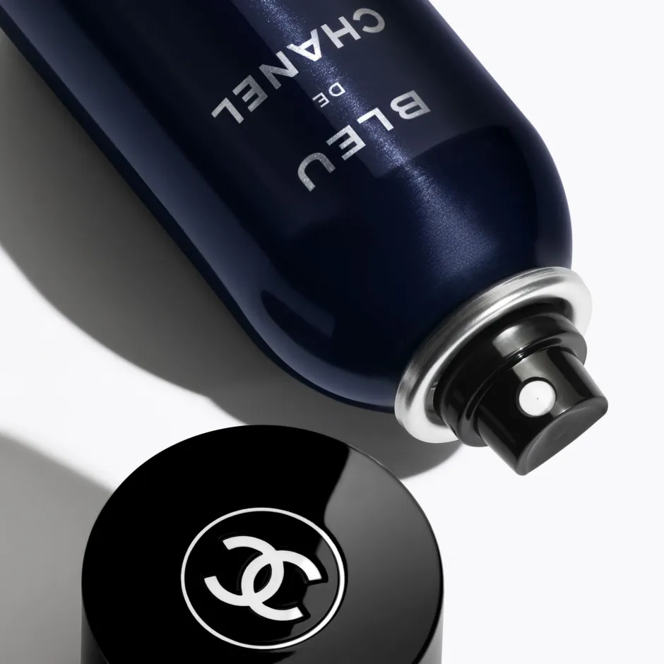 Die aromatisch-holzigen Noten von BLEU DE CHANEL in einem Deodorant Spray. Augenblickliches Frischegefühl. Diese Geste für das Wohlbefinden verfeinert die Präsenz des Duftes.