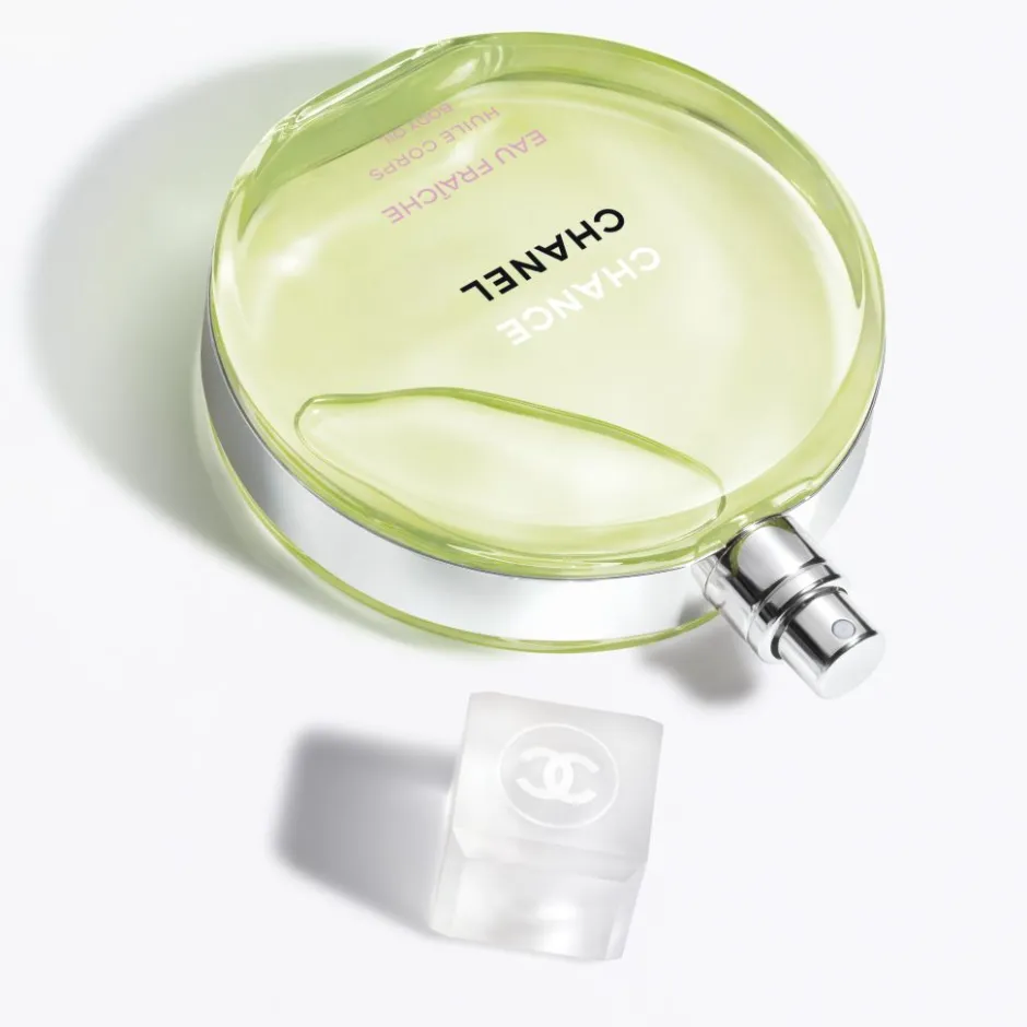 Das CHANCE EAU FRAÎCHE Körperöl – präsentiert im ikonischen CHANCE Glasflakon und in 150 ml Größe – ergänzt Ihr Duftritual. Durch das praktische Sprayformat lässt es sich einfach und großzügig auftragen.