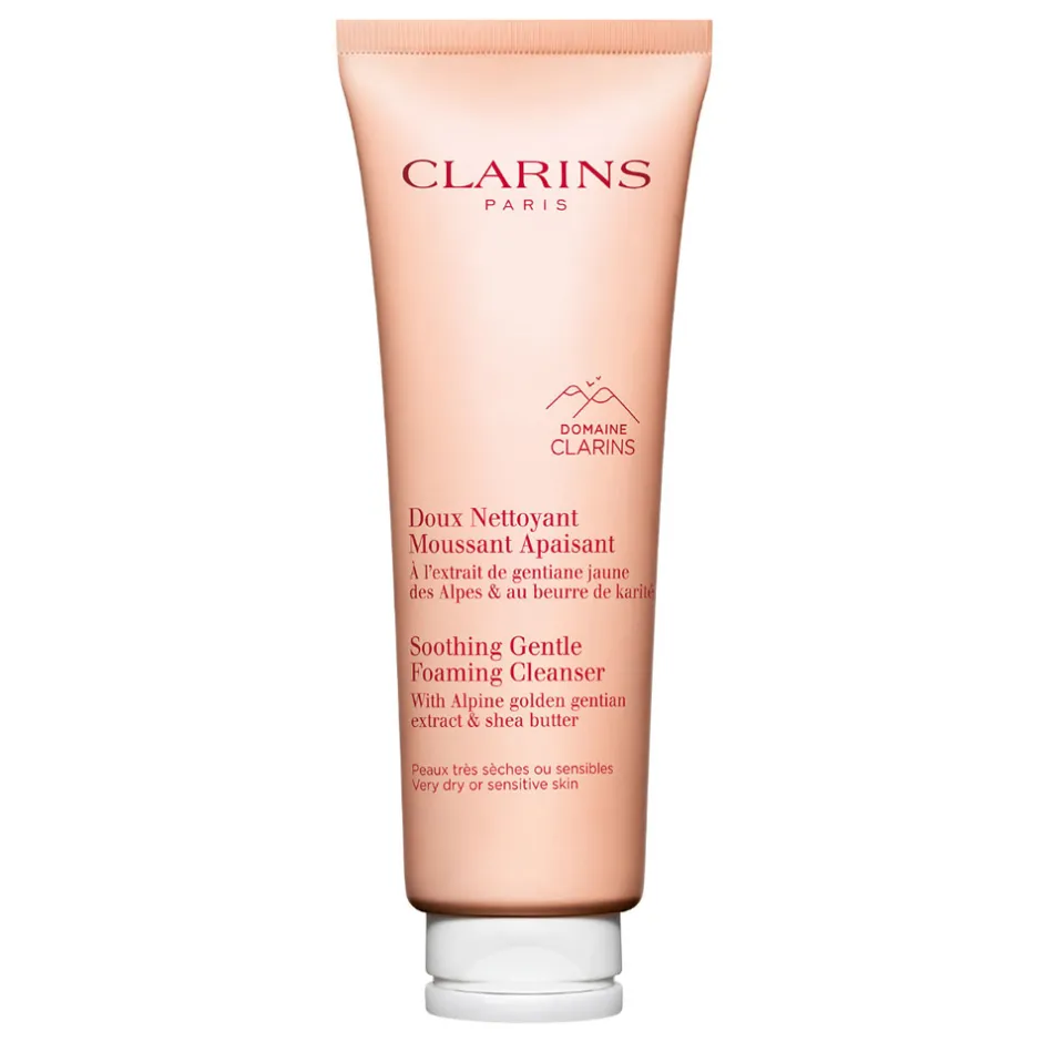 Der CLARINS Doux Nettoyant Moussant Apaisant bietet Ihnen eine wohltuende Reinigung, die optimal auf die Bedürfnisse sehr trockener oder empfindlicher Haut abgestimmt ist. Mit einem exklusiven Mix aus Alpenkräuter-Extrakten von der Domaine Clarins entfernt dieser Schaum effektiv Makeup und Unreinheiten, während er das Gleichgewicht Ihrer Haut bewahrt. Die biologische Sheabutter sorgt für eine intensive Feuchtigkeitsversorgung, während Kamillenextrakt beruhigend wirkt und unangenehme Hautgefühle mildert. Die raffinierte Formel beinhaltet zudem den Clarins [Gentle Complex], der mit Gelbem Enzian und Zitronenmelisse für zusätzliche Geschmeidigkeit sorgt. Moringa-Extrakt rundet die Pflegewirkung ab, indem er Schmutzpartikel sanft ablöst.