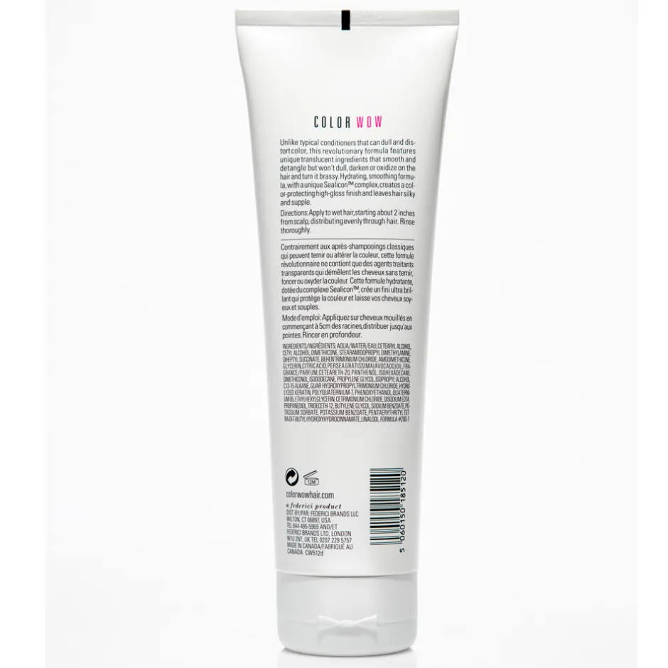 Der COLOR WOW Color Security Conditioner N-T bietet eine herausragende Pflegeformel, die speziell entwickelt wurde, um die Leuchtkraft Ihrer Haarfarbe zu bewahren. Dank seiner einzigartigen Zusammensetzung aus sechs lichtdurchlässigen Inhaltsstoffen bleibt Ihre Haarfarbe lebendig und unverfälscht. Der Conditioner verzichtet konsequent auf jegliche mattierenden oder verdunkelnden Stoffe, um den natürlichen Glanz Ihrer Haare zu bewahren. Ohne Parabene und Glanzmittel sorgt er für eine schonende Entwirrung und intensive Feuchtigkeitsversorgung egal ob für normales, dickes oder trockenes Haar. Vertrauen Sie auf eine Pflege, die nicht nur schützt, sondern Ihr Haar in seiner schönsten Farbe erstrahlen lässt.