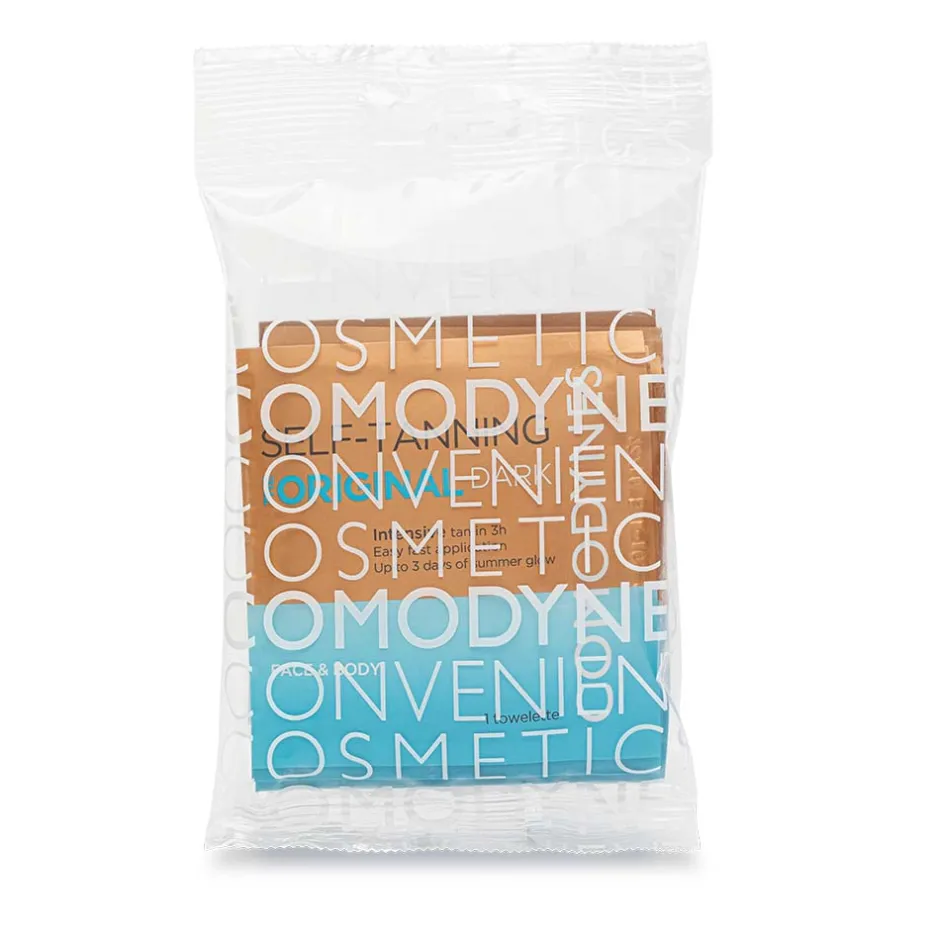 Das Comodynes SELF-TANNING THE ORIGINAL DARK Tuch kommt in einer eleganten, schlanken Verpackung, die sich durch ihre zweifarbige Gestaltung auszeichnet. Der Wechsel zwischen warmen Brauntönen und frischem Blau verleiht dem Äußeren eine moderne und stilvolle Optik. Die klare Typografie hebt die wesentlichen Eigenschaften hervor und sorgt für ein ansprechendes Erscheinungsbild. Das handliche Format ermöglicht eine einfache Anwendung und macht es ideal für unterwegs. Die durchdachte Verpackung spiegelt das hochwertige und innovative Konzept perfekt wider, sodass es nicht nur ein praktisches, sondern auch ein ästhetisches Erlebnis bietet.
