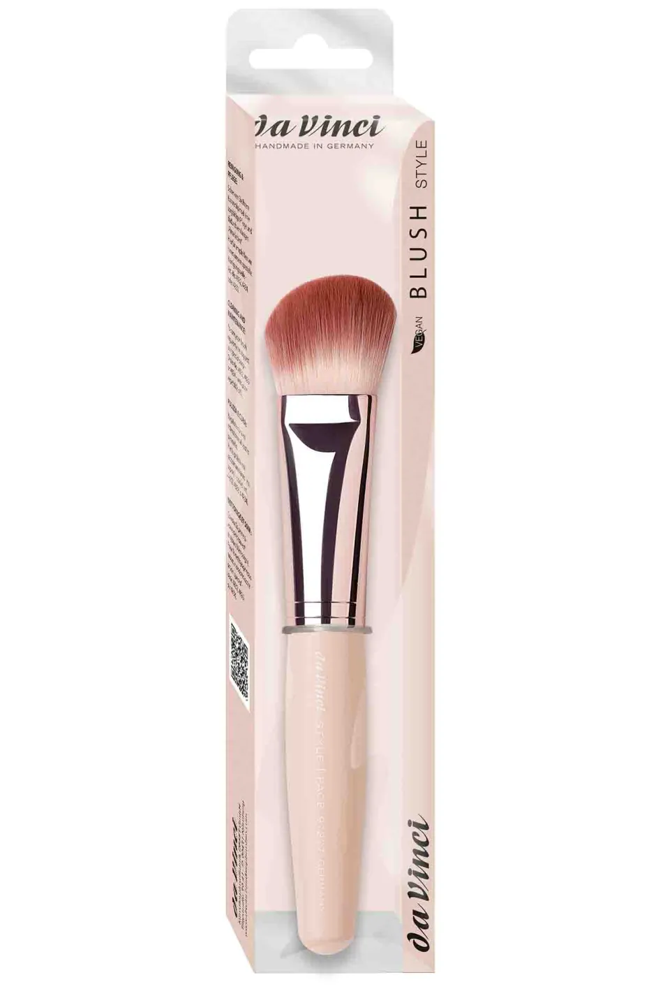 Optisch besticht der da Vinci Rougepinsel 97227 durch seine elegante und ergonomische Gestaltung. Der sanft geschwungene, beige Griff liegt angenehm in der Hand und bietet eine komfortable Handhabung. Der roségoldene Zwingenbereich verleiht dem Pinsel einen Hauch von Luxus und Eleganz. Die sorgfältig angeordneten, extrafeinen Kunstfasern sind nicht nur funktional, sondern auch ästhetisch ansprechend. Diese harmonische Kombination aus Form und Funktion macht den Pinsel zu einem stilvollen Begleiter in jedem Kosmetikset.