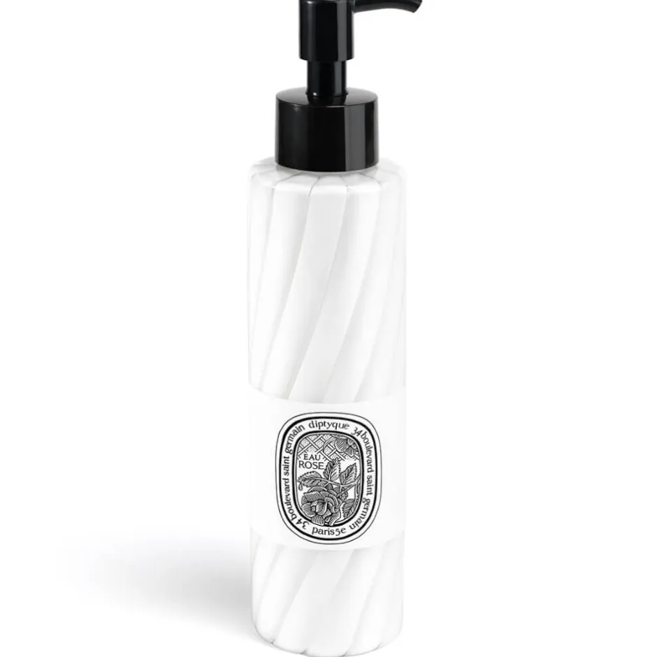Das Design der Diptyque Emulsion ist so elegant wie ihr Inhalt. Der schlanke, transparente Flakon besticht durch seine klare Linienführung, die zeitlose Eleganz ausstrahlt. Die hellen, spiralförmigen Akzente auf der Flasche harmonieren perfekt mit dem schwarzen Pumpverschluss, der für praktische Anwendung sorgt. Ein kunstvoll gestaltetes Etikett im klassischen Diptyque-Stil fügt eine subtile Note von Raffinesse hinzu, während die insgesamt minimalistische Gestaltung die edle Schlichtheit betont. Dieses Zusammenspiel aus Form und Funktion macht die Emulsion nicht nur zu einem Pflegeprodukt, sondern auch zu einem stilvollen Accessoire in Ihrem Badezimmer.