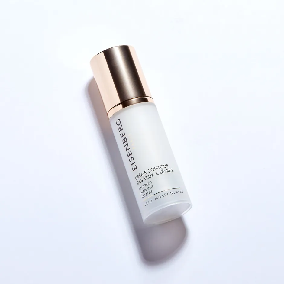 Der Flakon der EISENBERG Crème Contour des Yeux & Lèvres besticht durch seine elegante, schlanke Form und die zeitlose Kombination aus transparentem Weiß und edlem Gold. Die klare Linienführung spiegelt die Reinheit und Präzision der enthaltenen Pflegeformel wider. Der goldene Verschluss verleiht dem Design eine luxuriöse Note und sorgt für ein harmonisches Gesamtbild. Jedes Detail des Flakons strahlt eine subtile Raffinesse aus, die den hohen Qualitätsanspruch von EISENBERG unterstreicht. Dieses durchdachte Design macht die Anwendung der Creme zu einem täglichen Ritual der Schönheit.