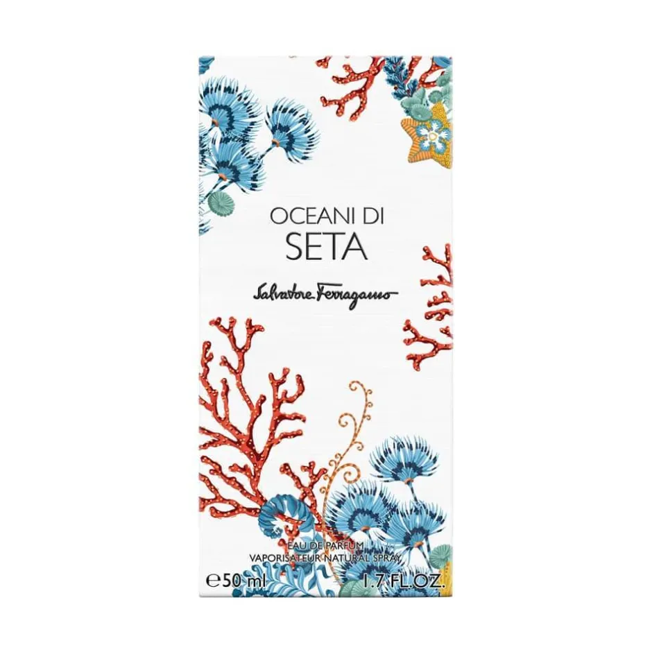 Der Flakon des Ferragamo Oceani di Seta Eau de Parfum Nat. Spray besticht durch seine klare, schlanke Form, die elegante Raffinesse ausstrahlt. Die transparenten Glaswände umhüllen den himmelblauen Duft, der an das endlose Blau des Meeres erinnert. Dekorative Motive von Korallen und Muscheln zieren die Oberfläche, was an eine Unterwasserwelt voller Leben und Schönheit denken lässt. Der silberne Verschluss rundet das ästhetische Gesamtbild ab und verleiht dem Flakon eine zeitlose Eleganz. Dieses Design ist nicht nur eine Hommage an die Elemente, sondern auch ein stilvolles Accessoire für Ihr Badezimmer.