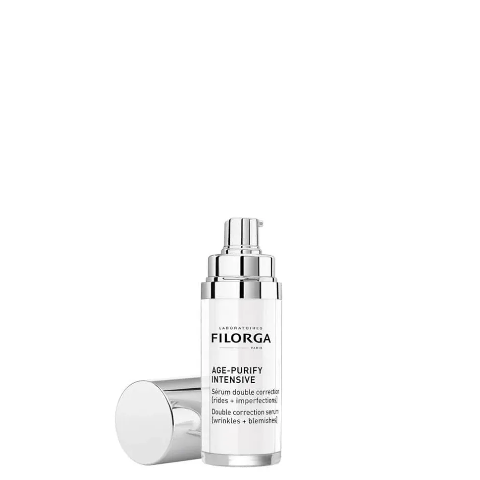 Das Filorga Age-Purify Intensive Serum bietet Ihnen eine innovative Lösung, um sowohl Falten als auch Unreinheiten mit nur einem Produkt zu behandeln. Der Hyaluro-Youth Complex arbeitet intensiv gegen Falten, indem er feuchtigkeitsspendende Hyaluronsäure, glättende Peptide und füllende Glycopeptide nutzt, um die Haut sichtbar zu straffen und zu erneuern. Gleichzeitig sorgt der Dermo-Rescue Complex für eine porenverfeinernde Wirkung, indem er mit Zink und Mikro-Peeling-Säuren überschüssigen Talg reduziert und Mitesser minimiert. Eine zusätzliche pflanzliche Komponente wirkt präventiv gegen Unreinheiten, um den Hautton zu harmonisieren. Das Serum überzeugt durch seine nicht komedogene, ultra-leichte Textur, die schnell einzieht und der Haut eine seidige Geschmeidigkeit verleiht.